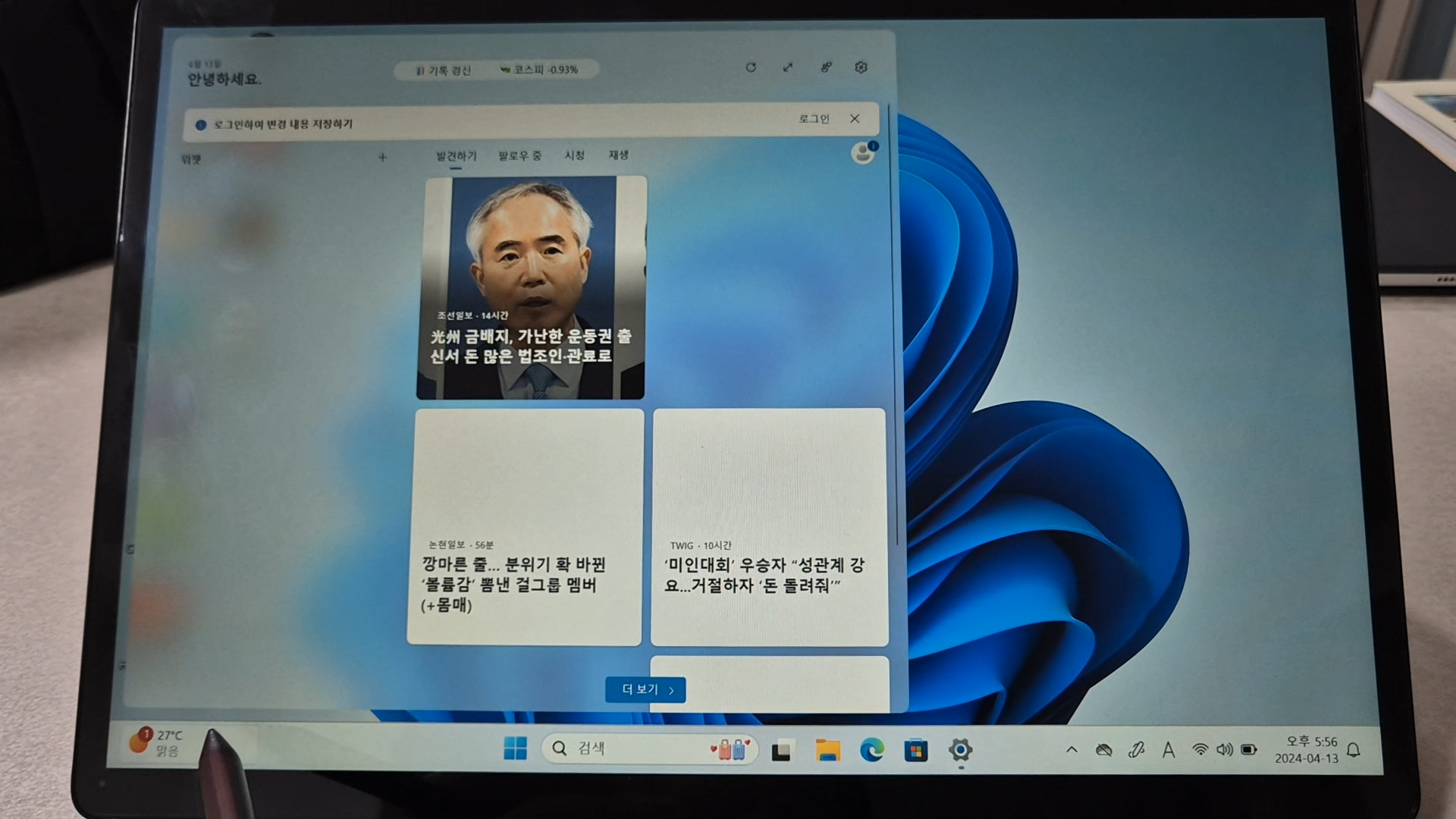 그리고 이건 저만 그런 건지 모르겠는데 좌측 하단에 뉴스 속보를 누르게 되면 위젯을 사용할 수 없다고 나옵니다. 이럴 때는 마이크로소프트 사이트에 접속해서 Microsoft Edge WebView2 Runtime 프로그램을 다운로드 받으면 됩니다.