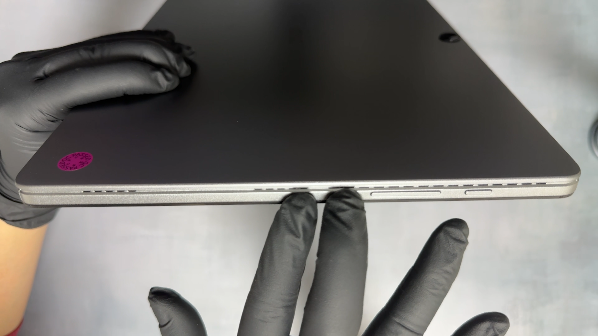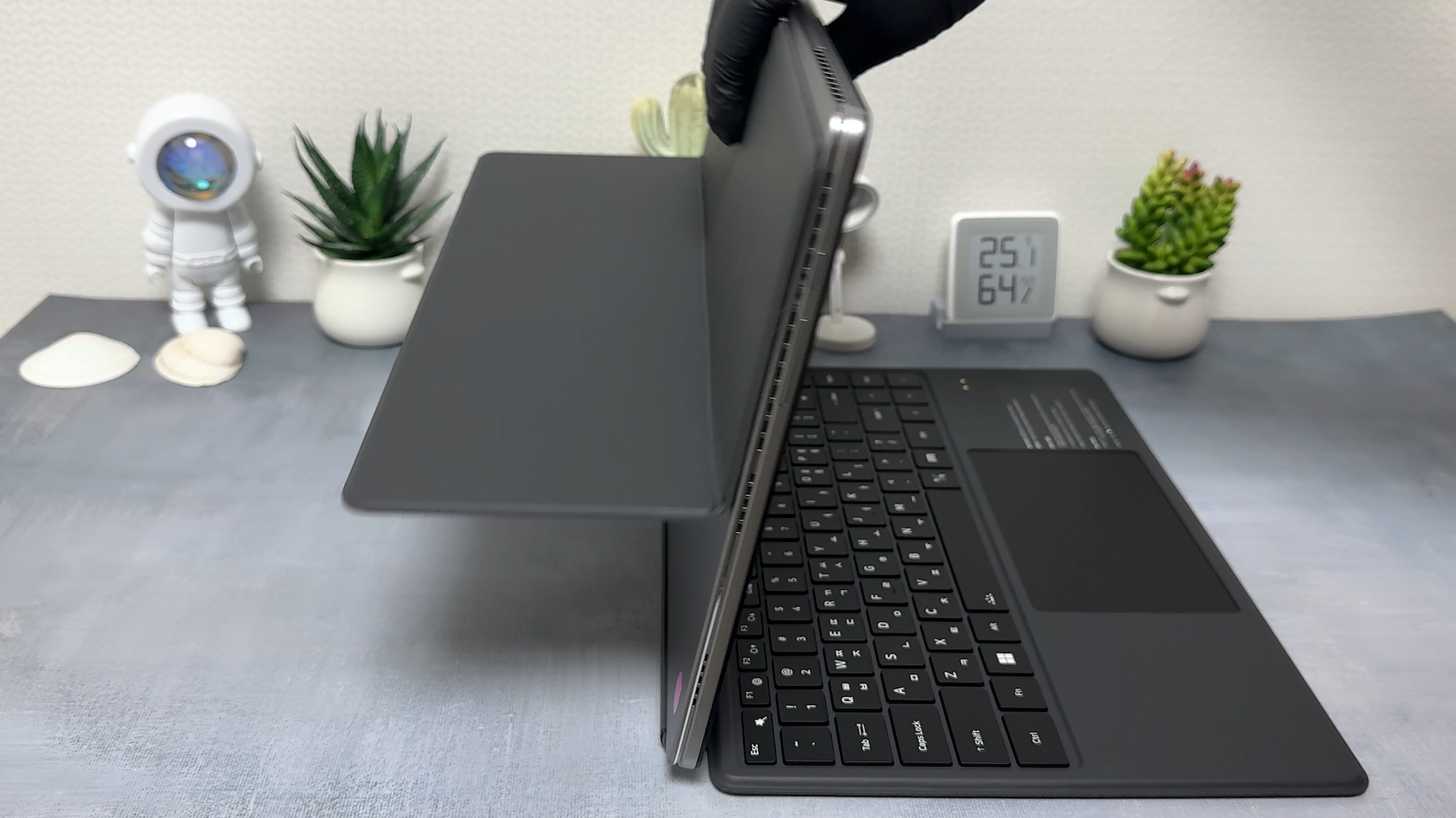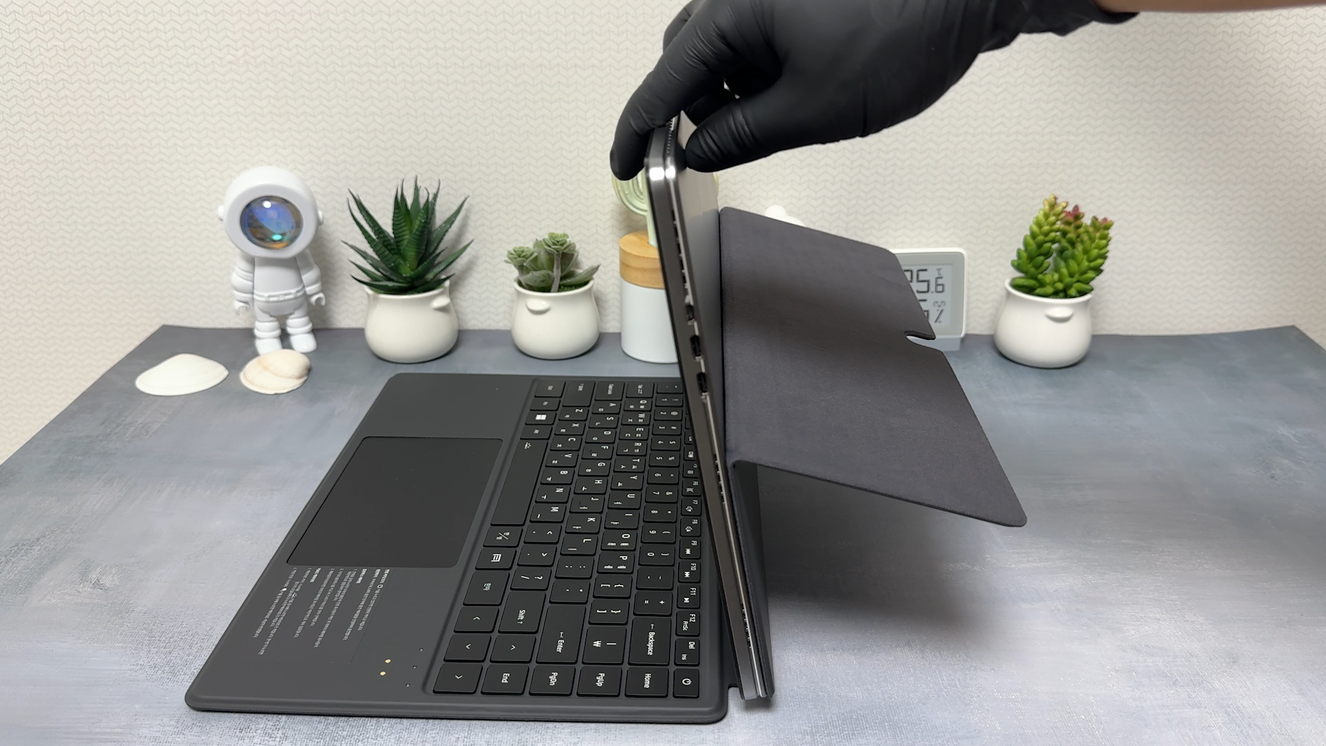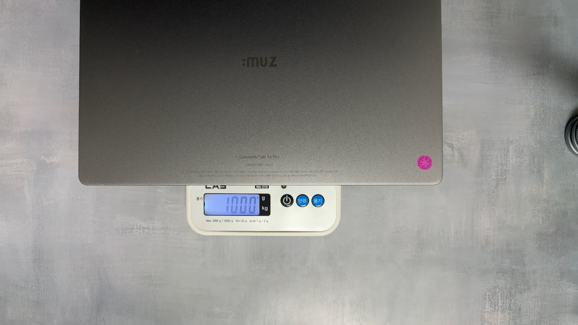 무게는 진짜 묵직하네요 본체만 1kg입니다. 스펙상 986g이라고 하니까 오차 범위로 보입니다. 커버를 부착하면 1.2kg이고, 키보드까지 부착하면 1.6kg입니다. 가벼운 무게는 아니지만 커버나 키보드 분리가 가능한 제품이라서 무게를 줄일 수 있다는 장점이 있는 거죠