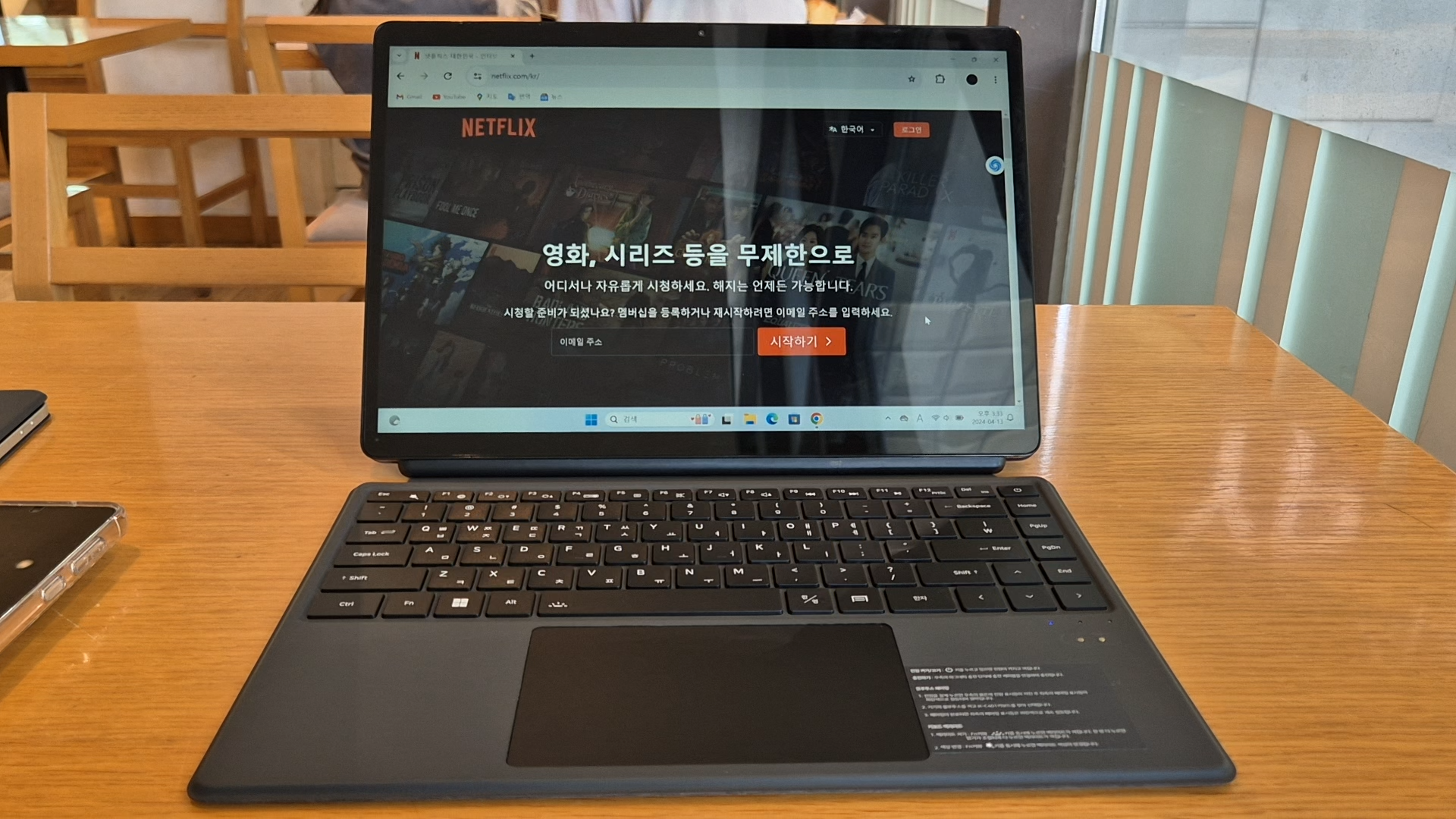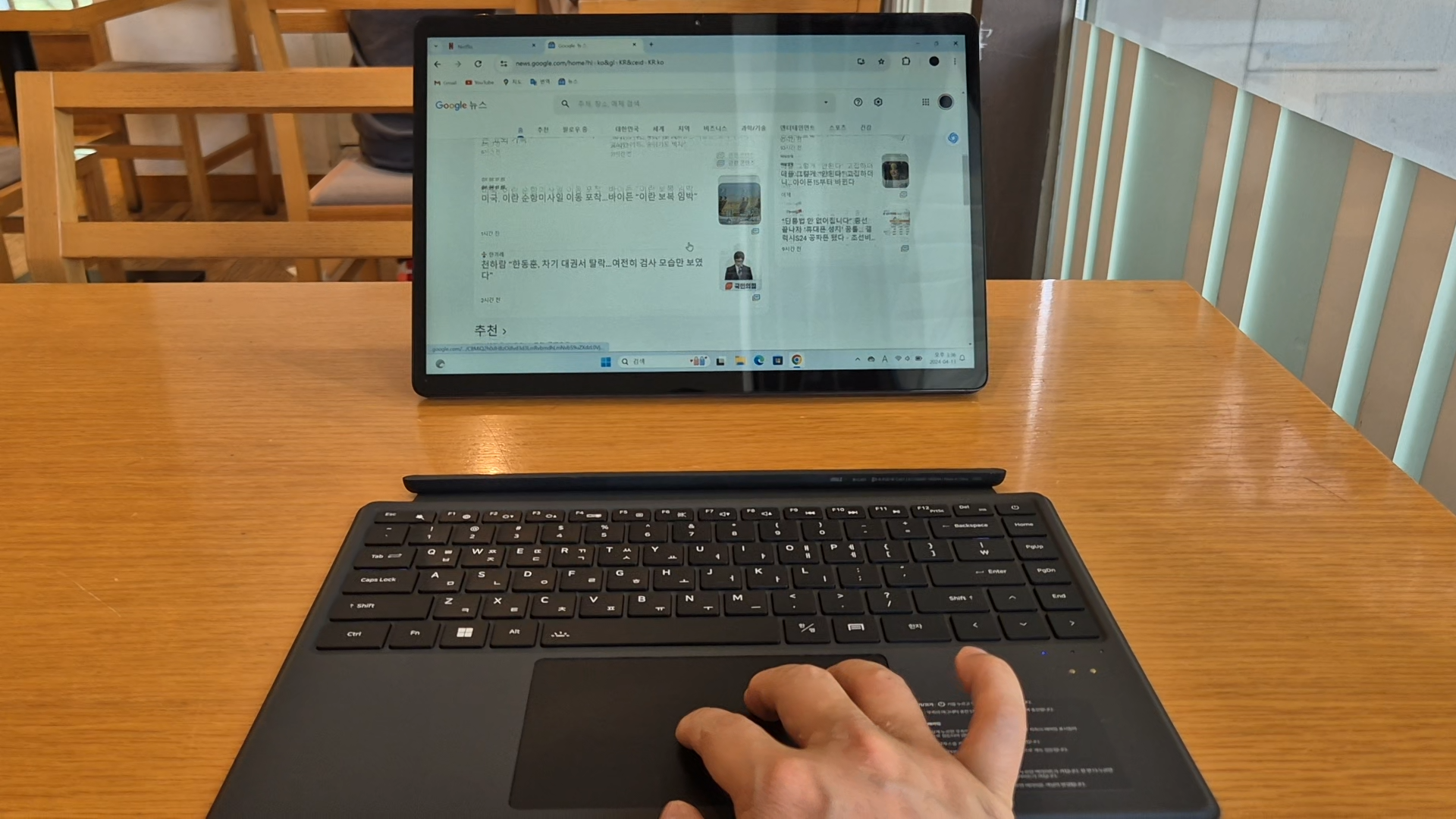 그리고 안드로이드 태블릿은 Widevine L1이 지원되어야 넷플릭스 고화질 영상 재생이 가능한데요 윈도우 노트북은 DRM 상관없이 넷플릭스 고화질 재생이 가능하다는 장점이 있습니다. 영상 시청을 화질을 보면 아이뮤즈 컨버터 탭 14 프로에서 지원하는 최대 해상도 1920 x 1080까지 지원했습니다. 아이뮤즈 컨버터 탭 14 프로는 쿼드 스피커(4 x 1W)라서 영상 감상할때 적당한 사운드를 들려줬습니다. 대화면이라 인터넷을 사용할 때도 쾌적하게 사용할 수 있습니다.