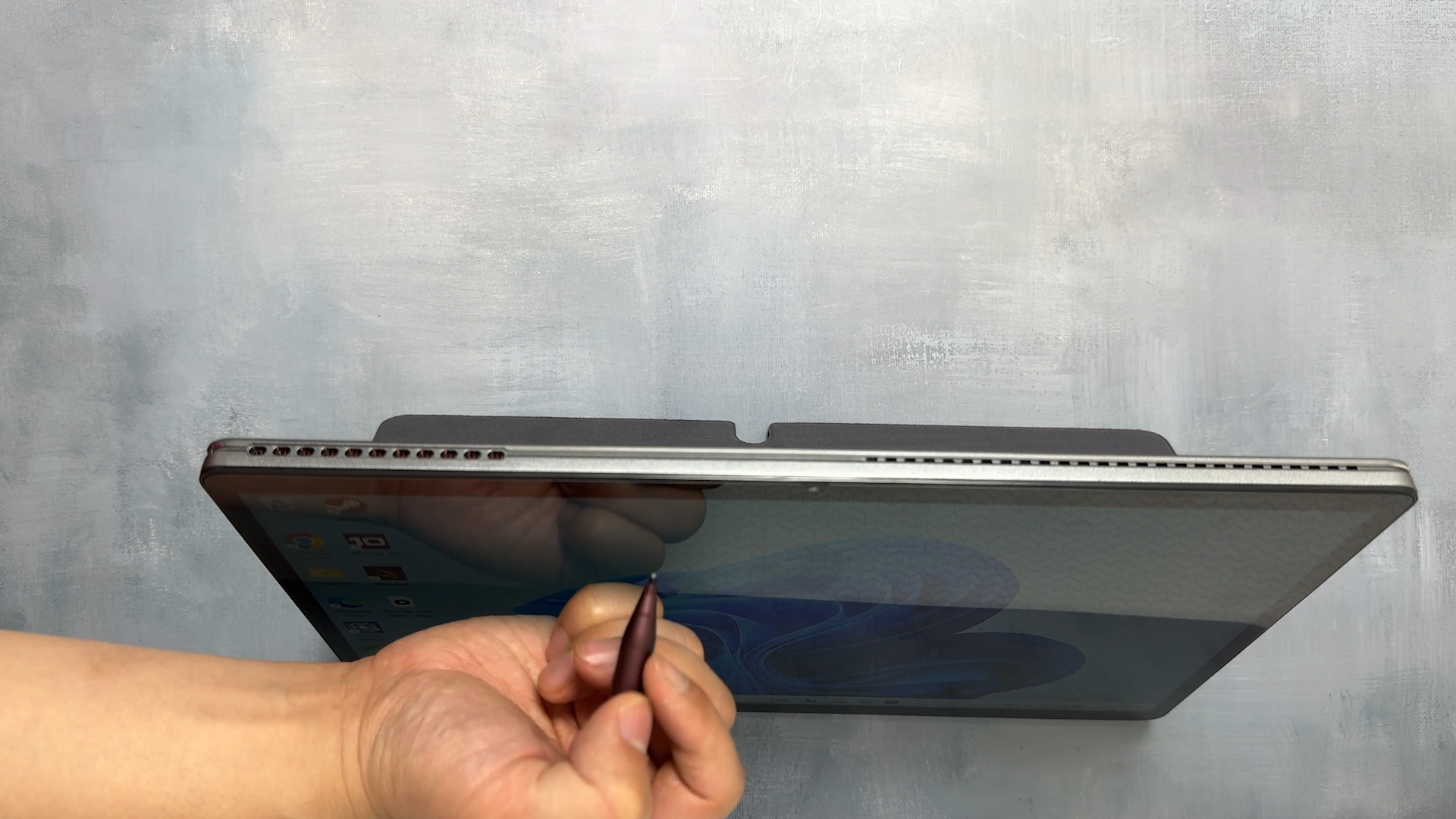 커버를 사용할 때는 커버 각도를 크게 만들어 주면 필기나 그림을 그리려고 액정에 압력을 가할 때 거치대가 버티지 못하고 뒤로 넘어갑니다.