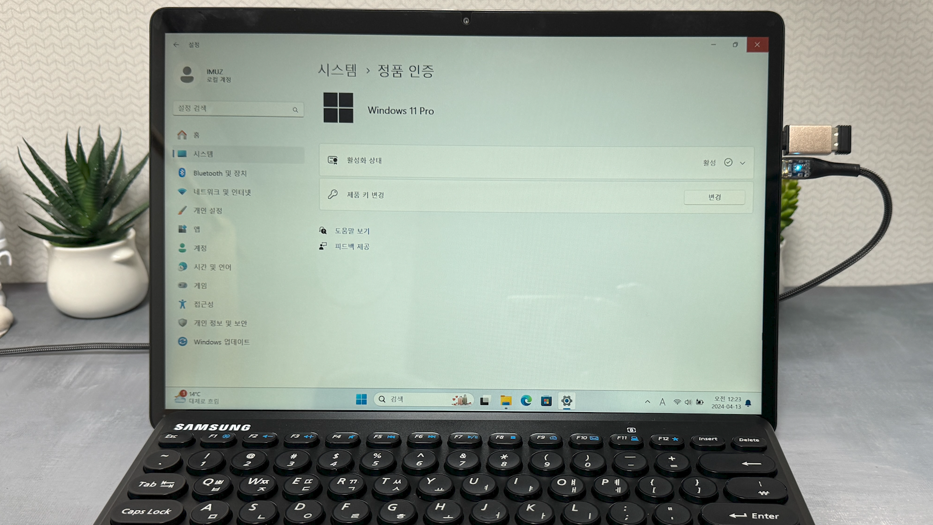 아이뮤즈 컨버터 탭 14 프로는 제품명이 프로라서 그런지 Windows 11 Pro 제품을 기본으로 제공해 주고 있습니다. Home 버전 보다, Pro 버전이 가격이 더 높은데 30만원대 태블릿에 Pro 버전을 설치해 주는 건 놀랍습니다. 제품을 받고 인증이 안된다는 표기가 된다면, 하루 정도 기다리면 자동으로 인증이 됩니다.