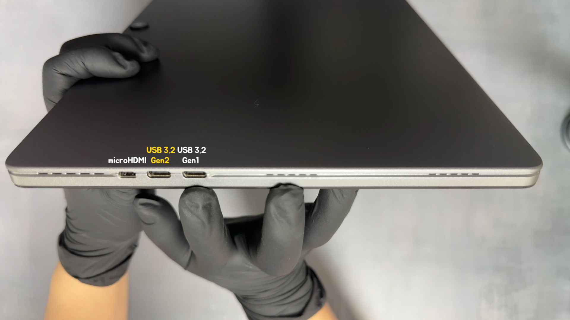 우측에는 Micro HDMI 단자, USB 3.2 gen2, USB 3.2 gen1 포트가 있습니다. gen1 포트만 PD 고속 충전과 DP ALT 모드를 지원해서 모니터 출력이 가능합니다. 뭔가 포트가 옹기종기 모여 있어서, 여유가 없습니다. 포트 간에 여유 공간을 두고 설계 했으면 어땠을까 하는 아쉬움은 있습니다.