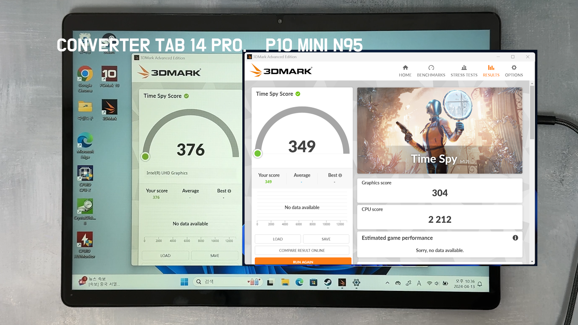 Time Spy Score 376점으로 N95 보다는 높게 나옵니다.