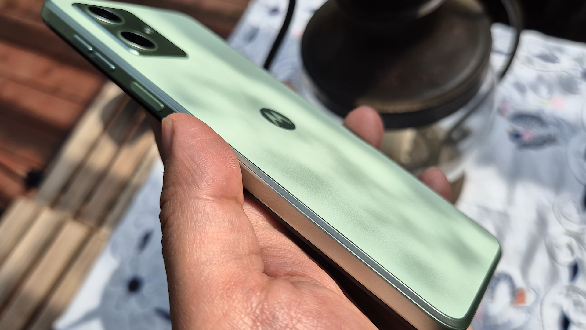 edge 40 리뷰할 때 비건 레더에 푹 빠졌던 적이 있었는데요 그래서 모토로라 G54 비건 레더 제품도 기대를 많이 했었습니다. 그런데 edge 40의 고급스러운 가죽 느낌을 받지는 못했습니다. 무슨 차이가 있는지 생각해 봤는데요 edge 40은 비건 레더에도 엣지가 있어서, 자연스러운 굴곡으로 가죽이 덮고 있는 느낌을 주는데요