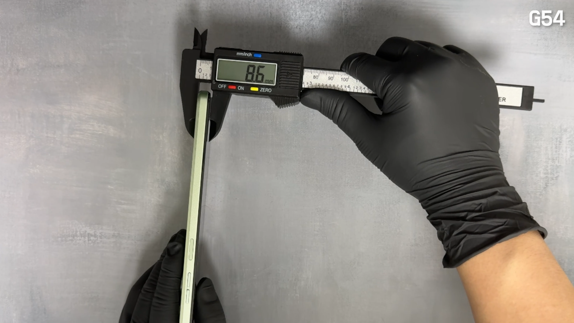 제품 두께는 8.6mm입니다. (카메라 돌출 부위까지 측정하면 9.5mm입니다.)