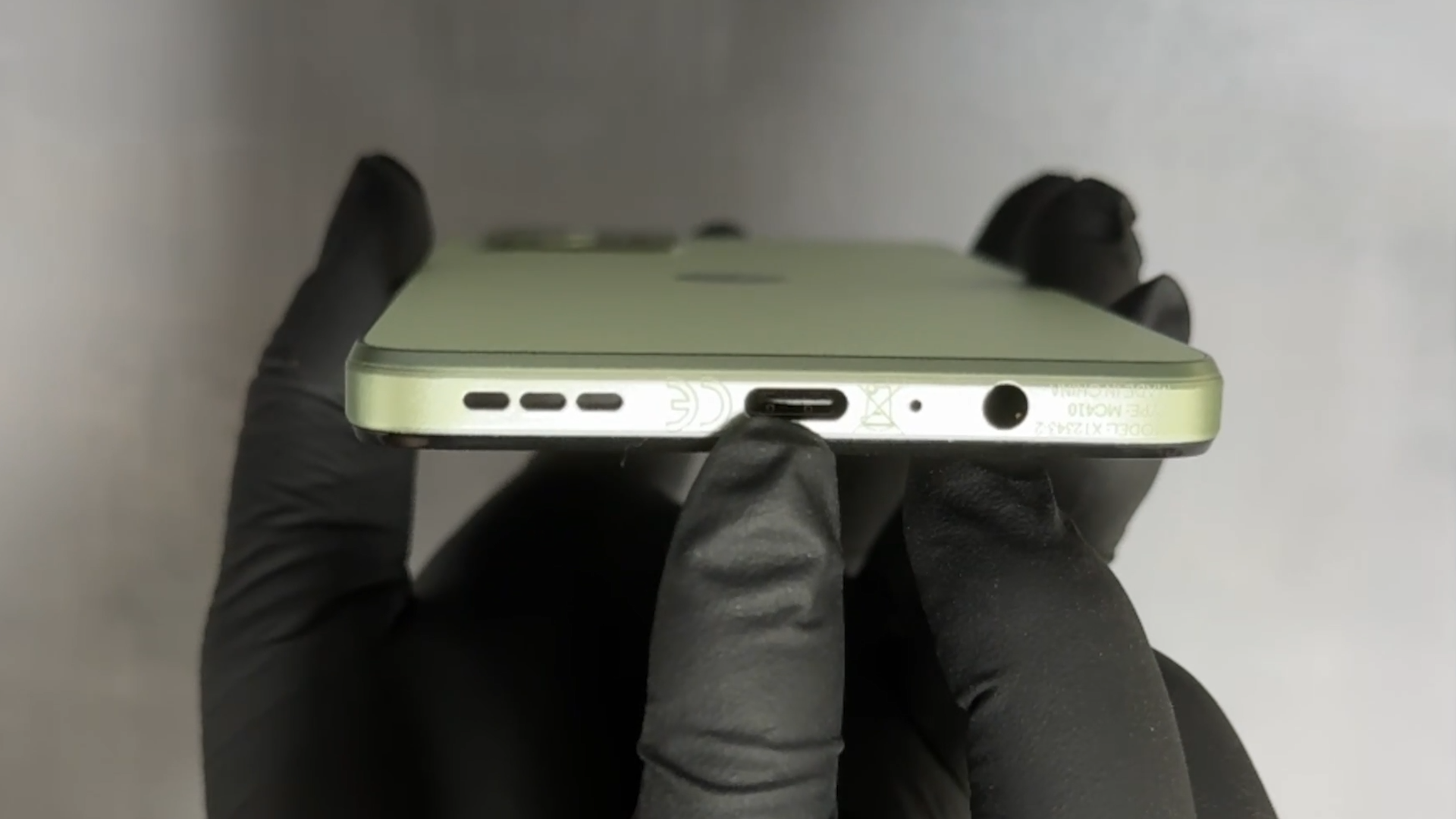 하단에는 스피커, USB-C 포트, 이어폰 잭입니다.