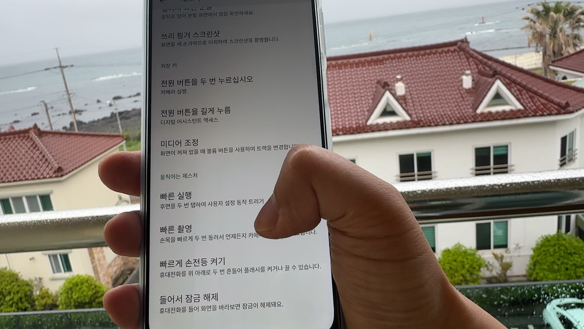 빠른 카메라 호출은 전원 버튼을 두 번 눌러도 카메라를 켤 수 있고요 손목을 빠르게 두 번 돌려도 카메라를 켤 수 있습니다.