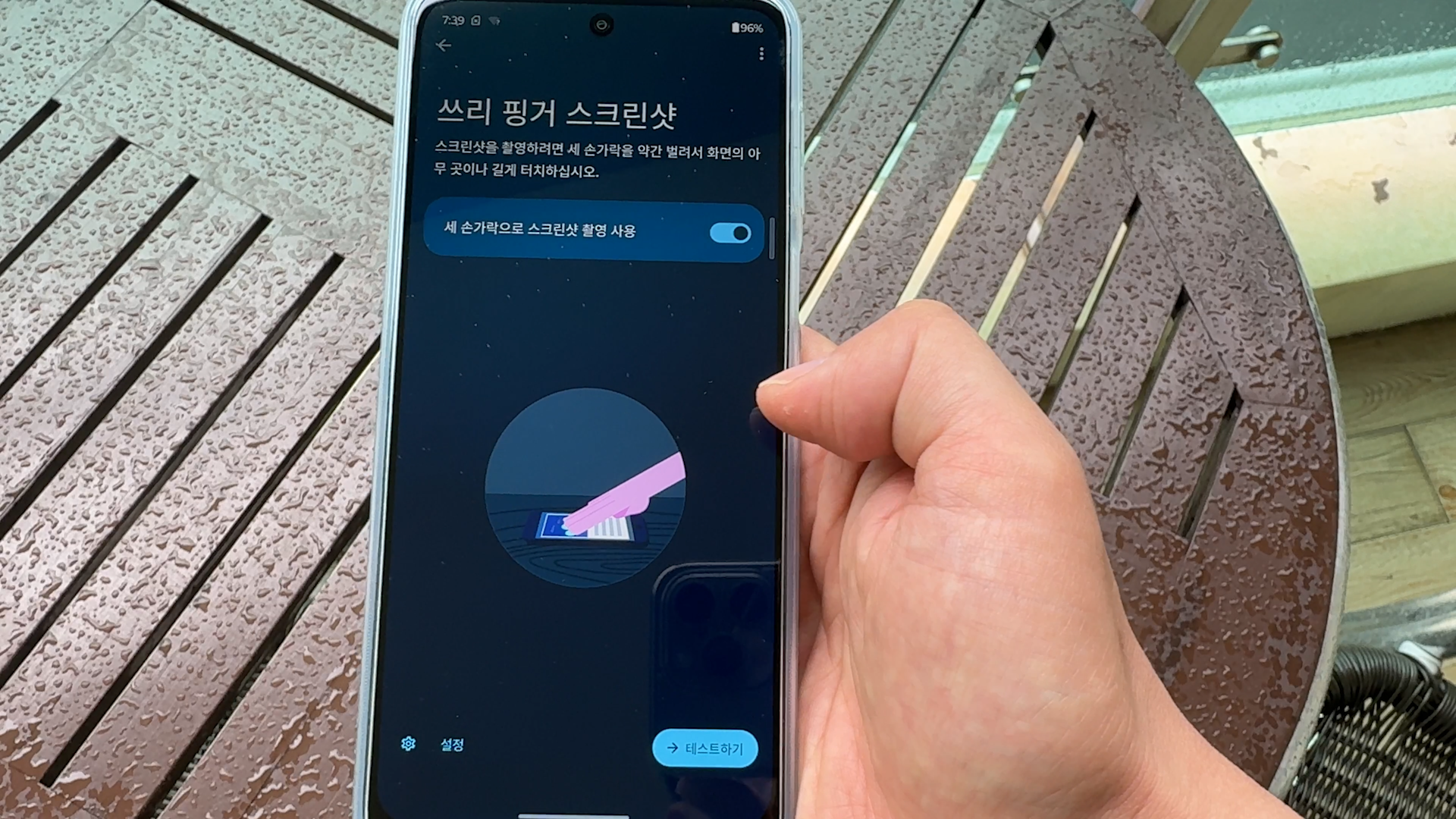 쓰리 핑커 스크린샷은 세 손가락으로 화면에 터치하면 됩니다.