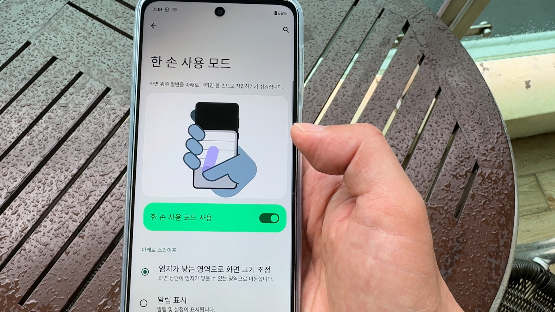 한 손 모드 사용도 있고요