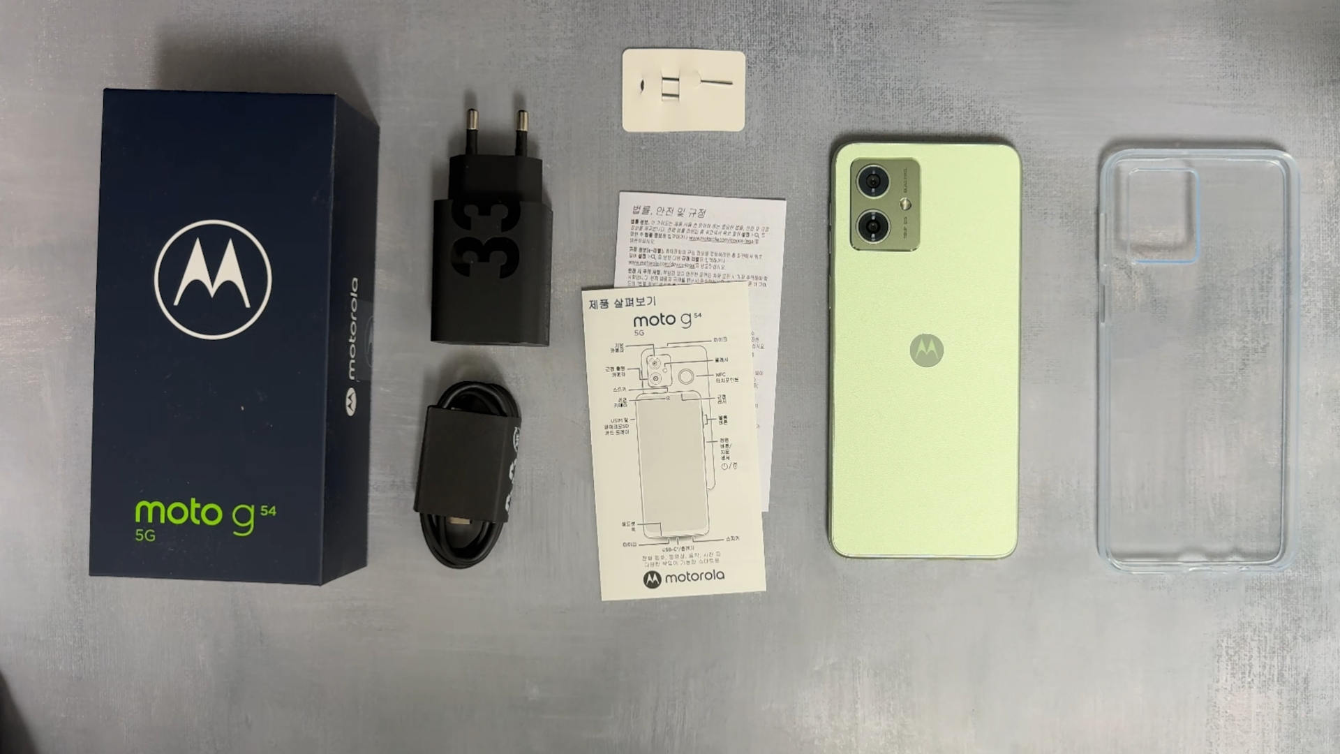 전체 구성품은 박스, 33W 충전기, 케이블, 설명서, 유심제거 핀, 스마트폰, 실리콘 케이스 입니다. 모토로로라 제품 특징이