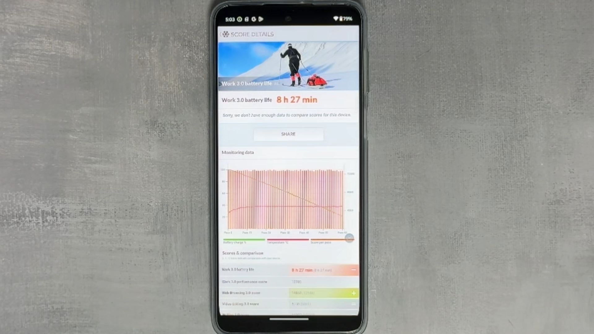 5000mAh의 대용량 배터리는 하루 종일 사용해도 충분하며, 15W의 유선 충전을 지원합니다. Wi-Fi 켜고 화면 밝기 최대 상태에서 8시간 27분 나왔습니다. 그리고 대기 화면도 오래가서 몇일 동안 충전 없이 그대로 둬도 배터리 누수가 적었습니다.
