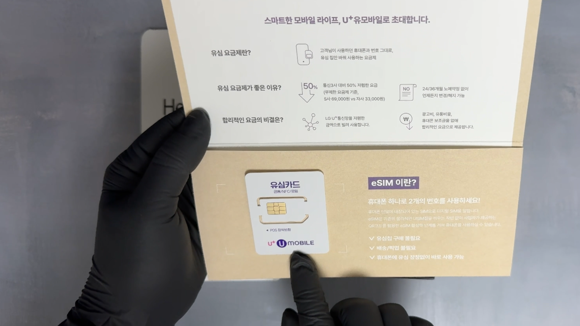 기본 구성품에 LG U+ UMOBILE 알뜰폰 유심이 동봉되어 있습니다.