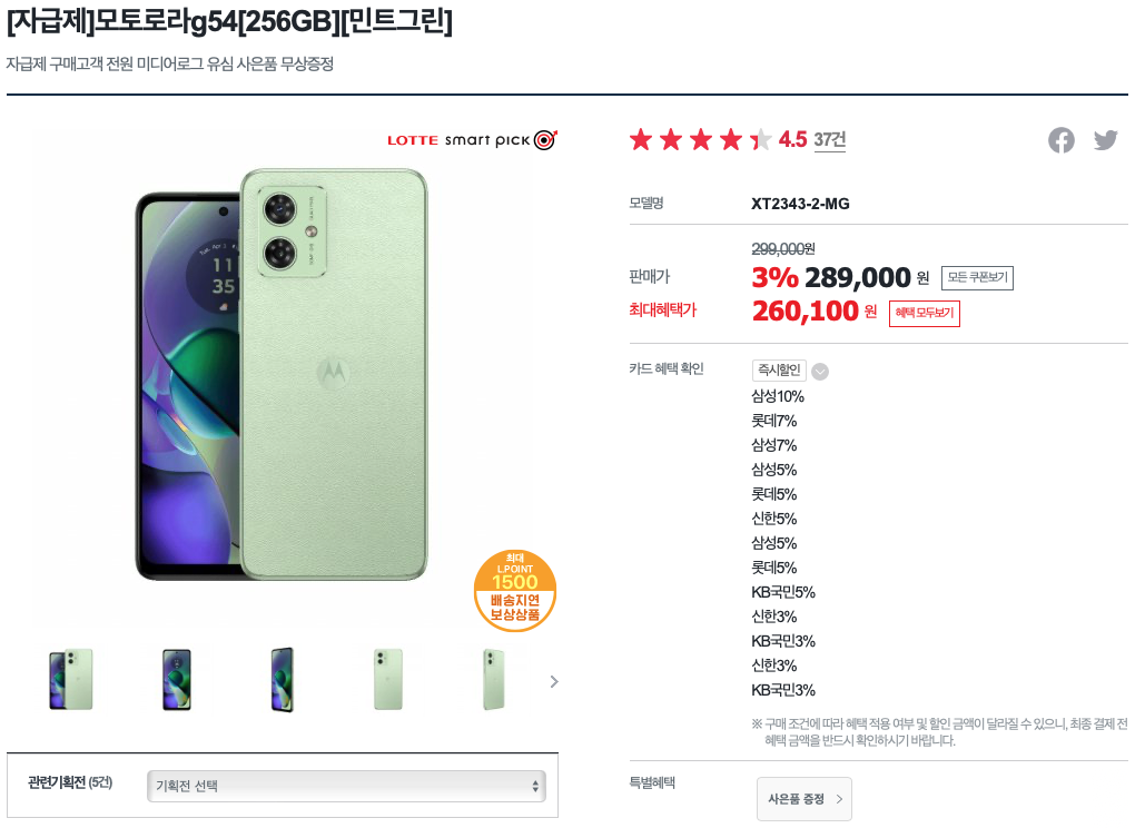 모토 G54는 가격대비 뛰어난 성능을 제공했습니다. 적어도 흔한 G99 AP는 사용하지 않아서 좋았고요 출고 가격은 299,000원에 출시되었으나 할인은 계속 있으니까 좋은 가격에 구입하길 바랍니다. 가성비 좋은 스마트폰을 찾고 있다면, G54는 분명 고려해볼 만한 옵션이 될 것입니다.