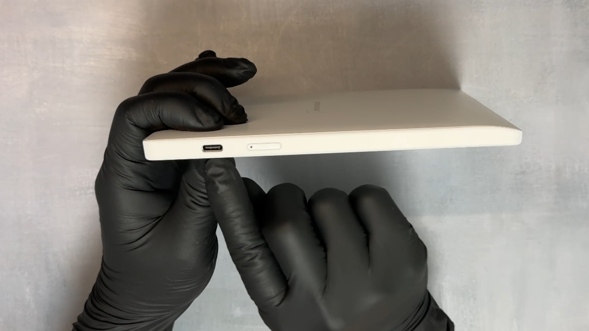 오른쪽에는 충전 포트와 전원 버튼이 있습니다.
