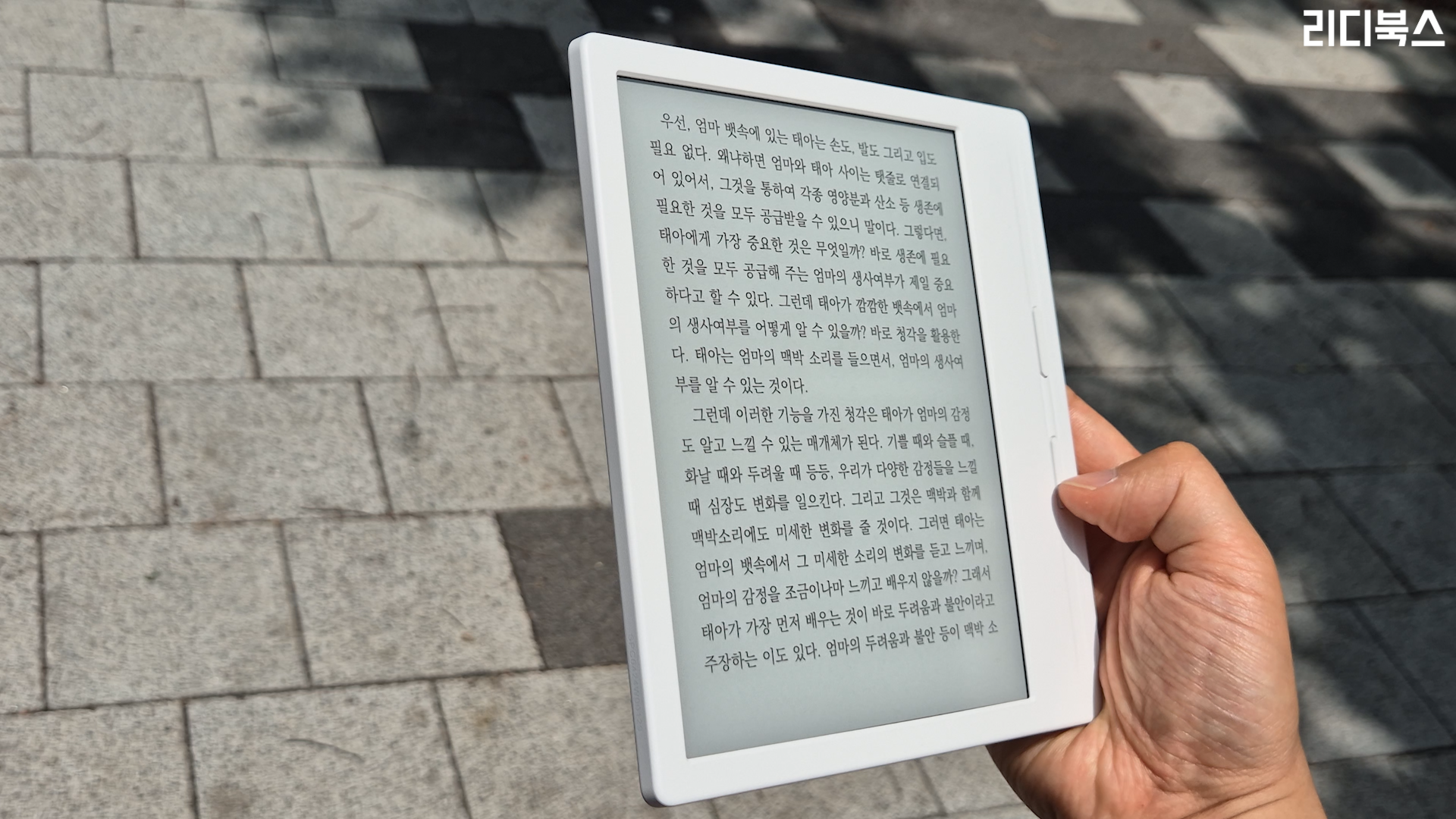 리디북스 앱을 실행시켜서 책을 하나 열어볼게요 마스에 프론트 라이트 밝기가 최대로 되어 있어서 책과 다른 이질감이 느껴지는데요