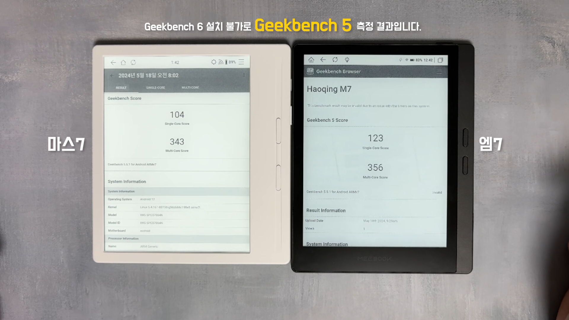 M7은 Rockchip의 RK3566, 4코어 제품과 성능 테스트를 진행해봤습니다. 긱벤치 6는 설치가 안 돼서, 긱벤치 5로 측정을 진행했습니다.