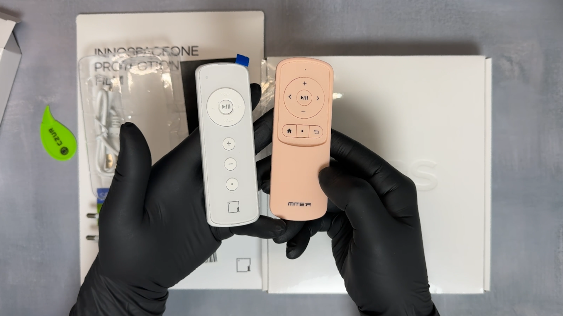 화이트 이노키 리모컨도 받았는데요 미테르 RM1 리모컨과 비교해보면 이노키 제품이 더 작습니다.