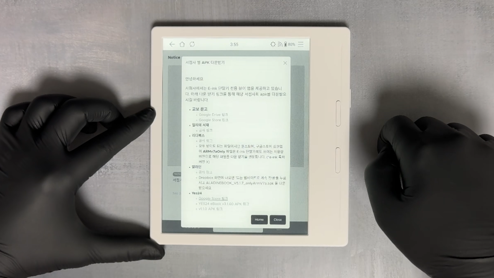 조명을 완전이 끄게 되면, 실내에서는 패널 밝기가 많이 어둡습니다. e-ink 패널이 어두운데, 화이트 베젤을 사용해서 더 어둡게 보입니다.
