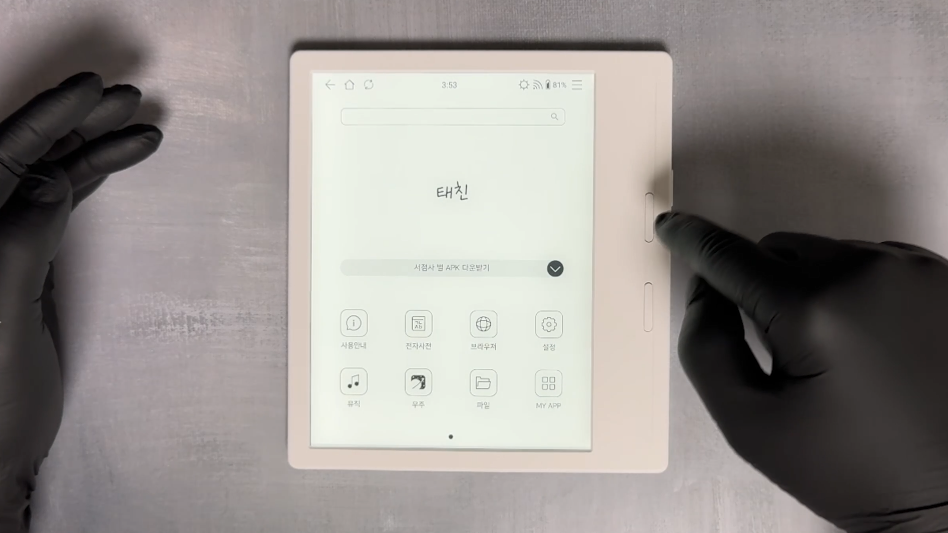 전원을 켜고 Wi-Fi를 연결하면 시스템 업데이트가 진행됩니다. 초기 설정에서 문구를 적도록 되어 있어서 제 닉네임 '태친'으로 적었습니다. 작년에 리뷰했던 이노스페이스원 루나X와 동일 런처로 보입니다.