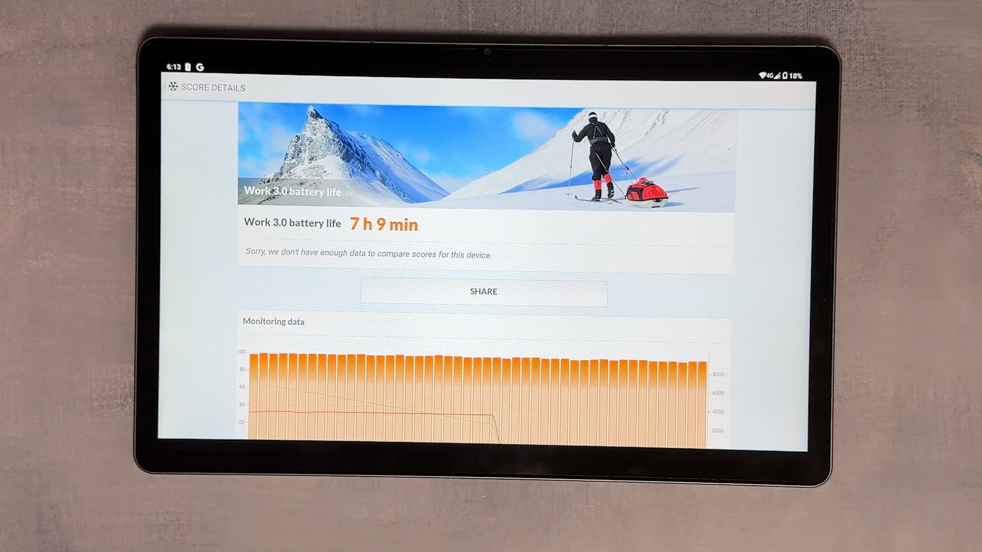 Wi-Fi 켜고 최대 밝기에서 배터리 연속 사용 테스트 결과에서도 7시간 9분으로 준수한 배터리 성능을 보여줬습니다. 최대 20W의 고속 충전을 지원하는데 충전기를 많이 가리는 편입니다. 제가 사용하는 morac 120W 고속 충전기와 호환성이 좋지 못해서 충전 중에 터치가 먹통이 되는 현상이 발생했습니다. 한번 발생하면 충전기를 제거해도 재부팅 전까지 먹통이 됩니다.
