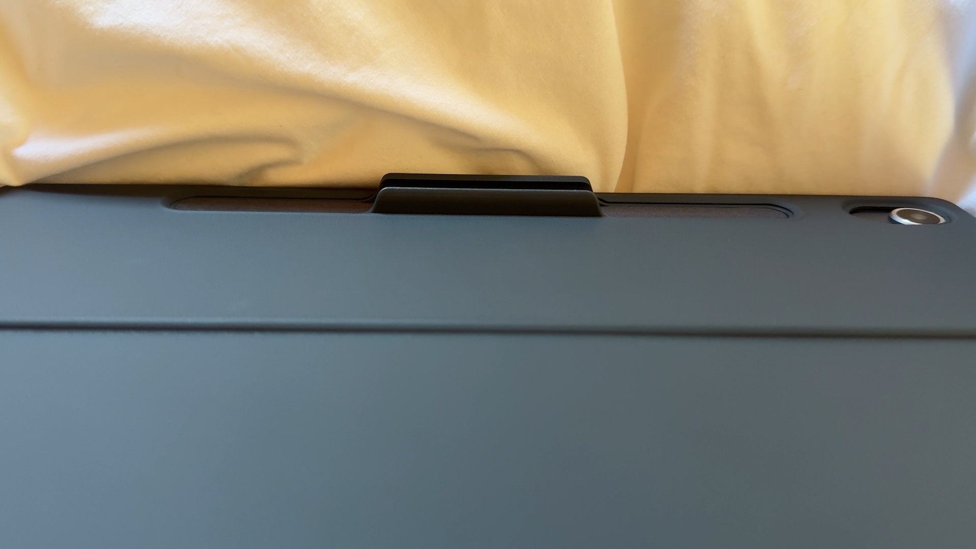 또 하나 아쉬운 점은 자력이 강하지 않아서 키보드를 덮었을 때 화면에 강하게 부착되지는 않습니다 이렇게 덜렁거리는데, 들고 다닐 때도 신경 쓰이고 전원을 안 끄고 가방에 넣어뒀을 때 계속 화면이 켜질 수도 있다는 단점이 있습니다.