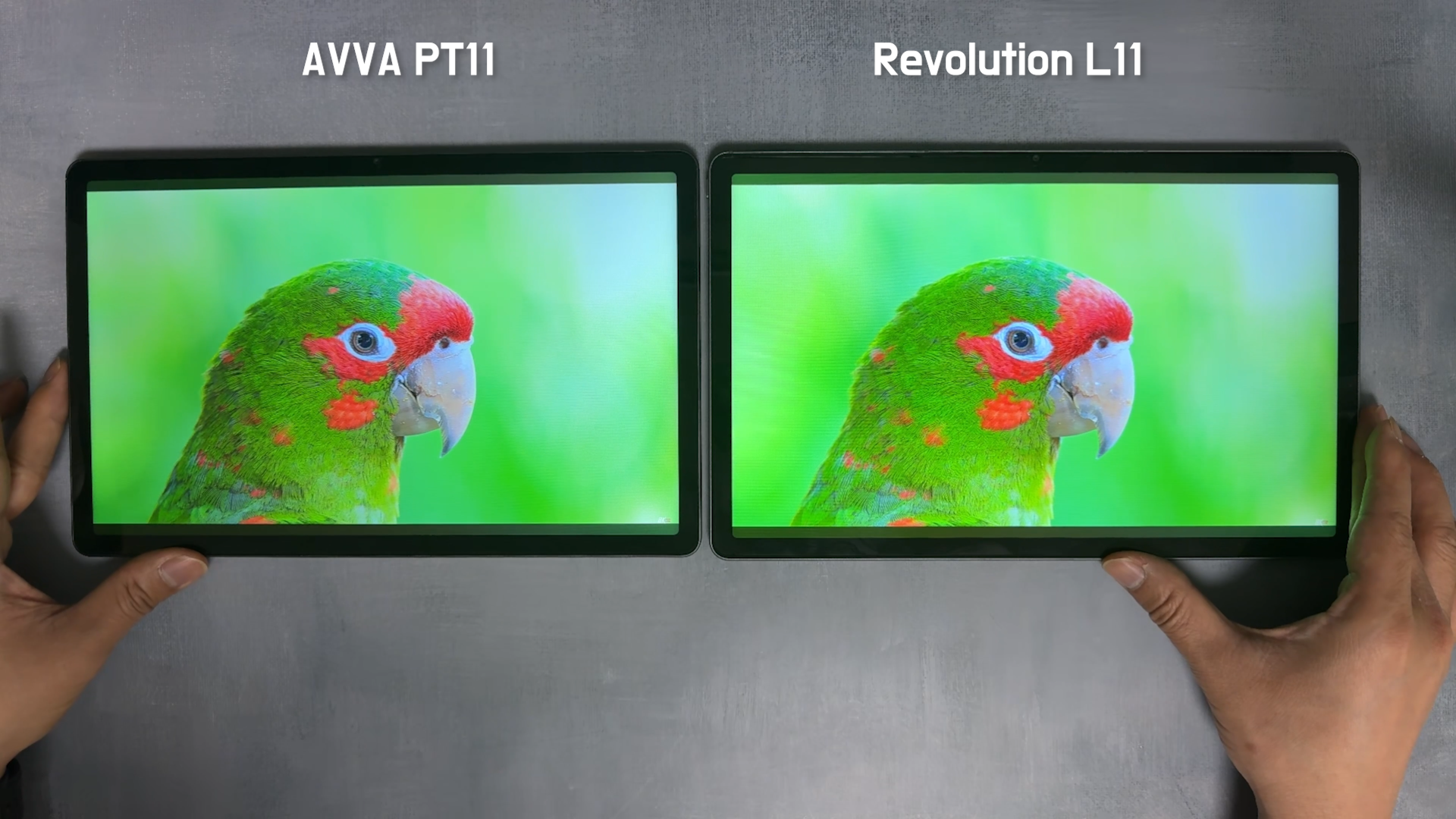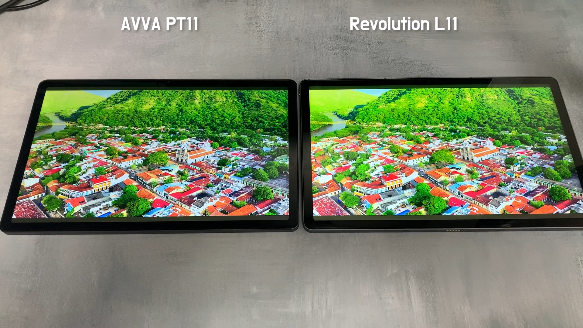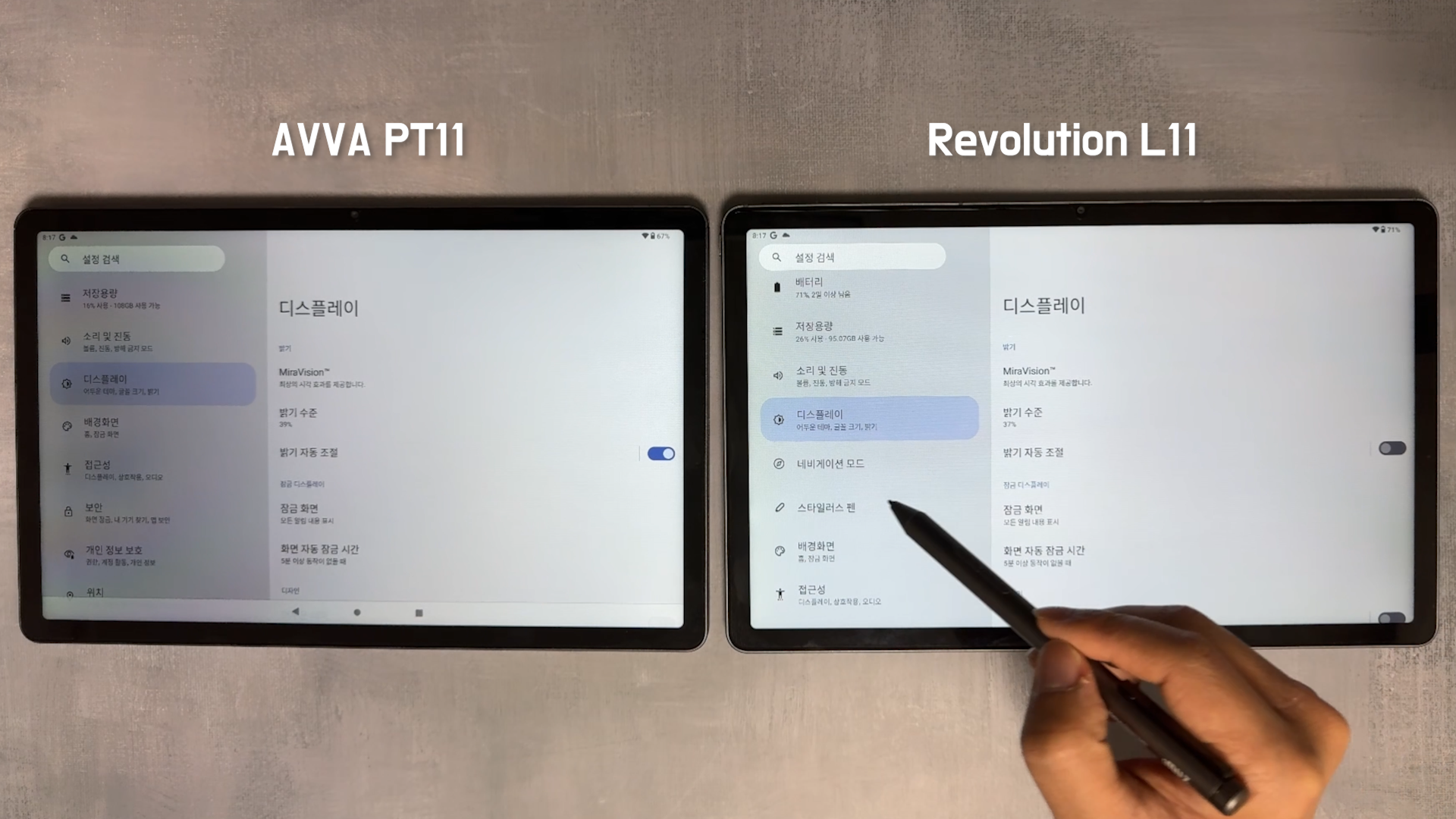 PT11은 OTT 플랫폼에서 고화질의 콘텐츠를 즐길 수 있도록 Widevine L1을 인증받았습니다. 아이뮤즈 레볼루션 L11 제품과 비교해보겠습니다. 두 제품 모두 11인치 IPS LCD 화면은 2K(2000x1200) 해상도를 제공하지만, 화면에서 보이는 화사함은 아이뮤즈 레볼루션 L11 제품이 더 좋았습니다. 두 제품 모두 밝기는 최대로 올린 상태입니다.