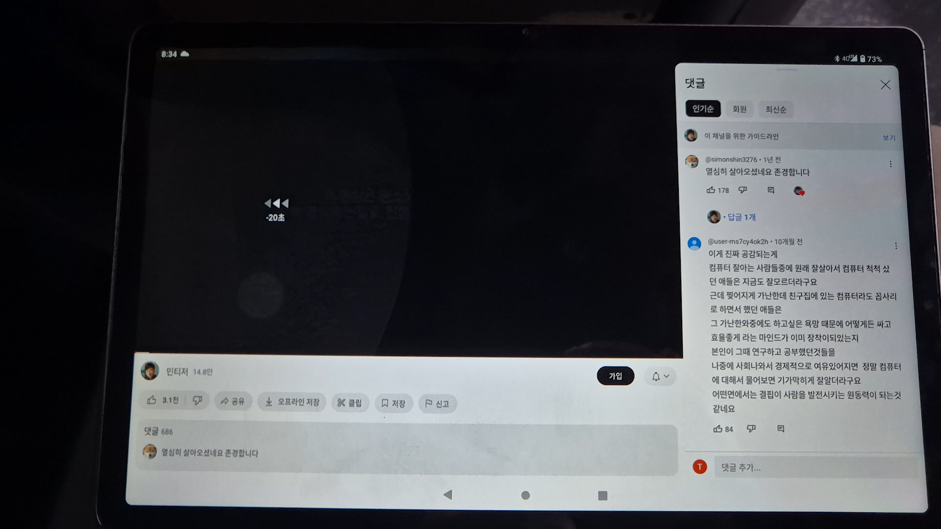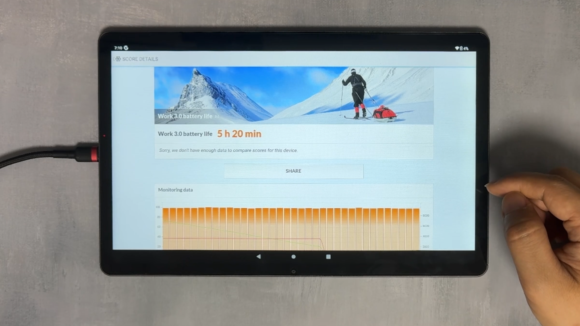 배터리는 8,000mAh로, FHD 화질의 유튜브 영상을 연속 시청 시 약 10%의 배터리가 소모됩니다. Wi-Fi 켜고 최대 밝기에서 5시간 20분 측정되었습니다. 배터리가 오래가는 태블릿이라고 말할 수는 없을 것 같고, 시중에서 판매되는 일반적인 태블릿과 비슷한 수준입니다. 충전은 최대 20W의 PD 충전을 지원합니다.