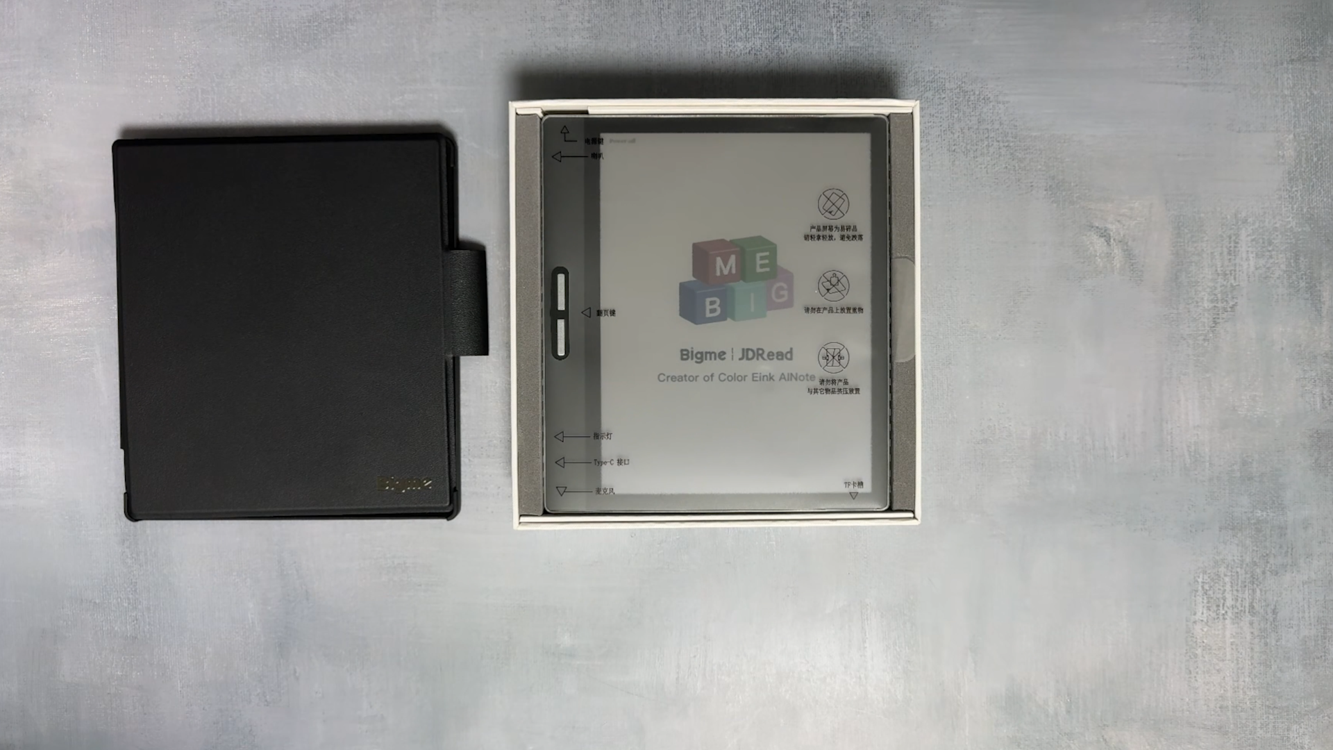 본체 박스를 열면 Bigme 제품이 먼저 보입니다.