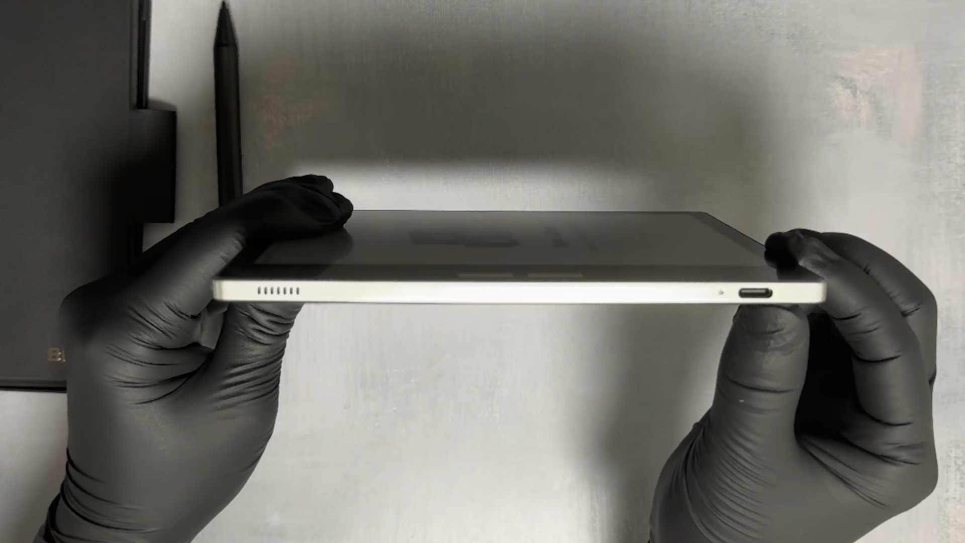 좌측에는 스피커와 C타입 충전 포트가 보입니다.