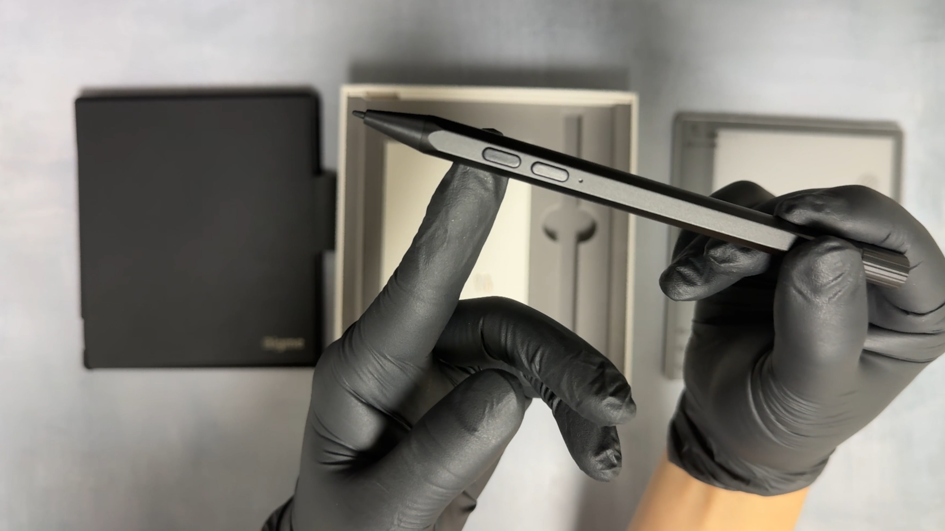 기본 케이스가 동봉되어 있다는 건 좋네요 케이스 재질은 ONYX BOOX Page 제품과 동일해 보입니다. 차이점은 이 제품은 안쪽이 검은색으로 되어 있고 자석 방식이 아닙니다. 커버에는 펜 홀더가 있습니다. 케이스의 재질과 마감은 괜찮습니다.