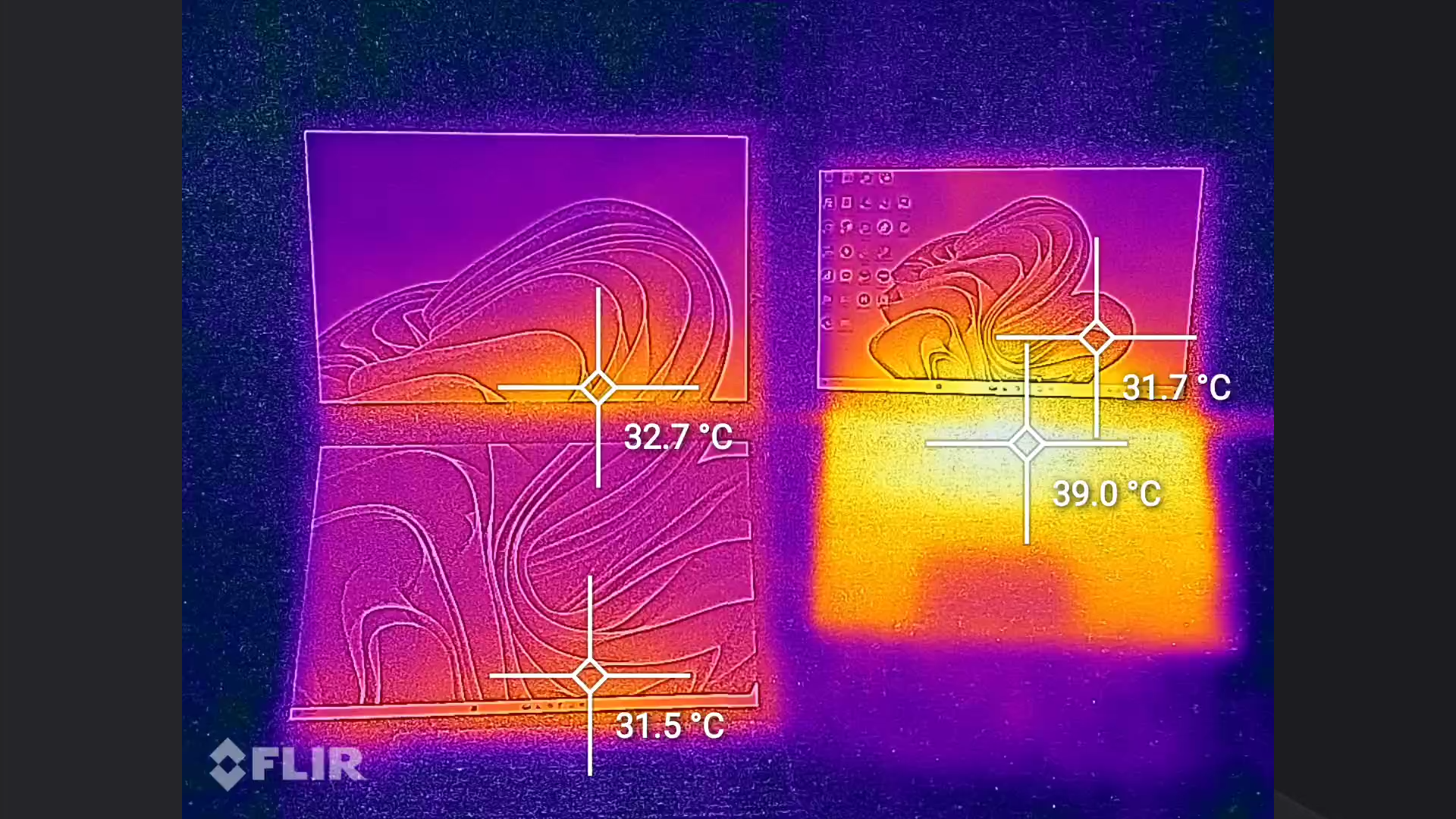 전면 온도는 32도 유지되었고, 후면 온도는 36도 정도 유지되었습니다. 노트북이 40도를 넘는 것을 보면, 모니터에서 발열이 많이 발생한다고 보기는 어려울 것 같습니다.