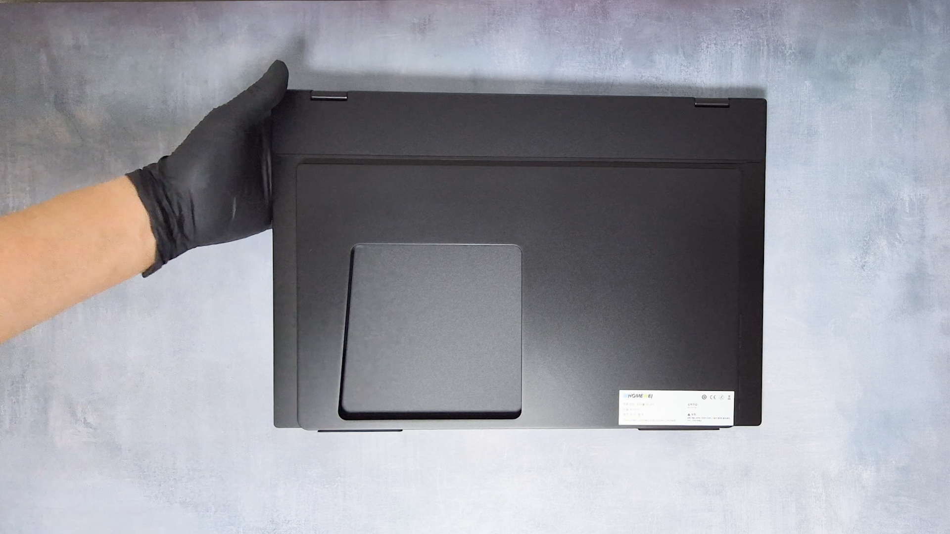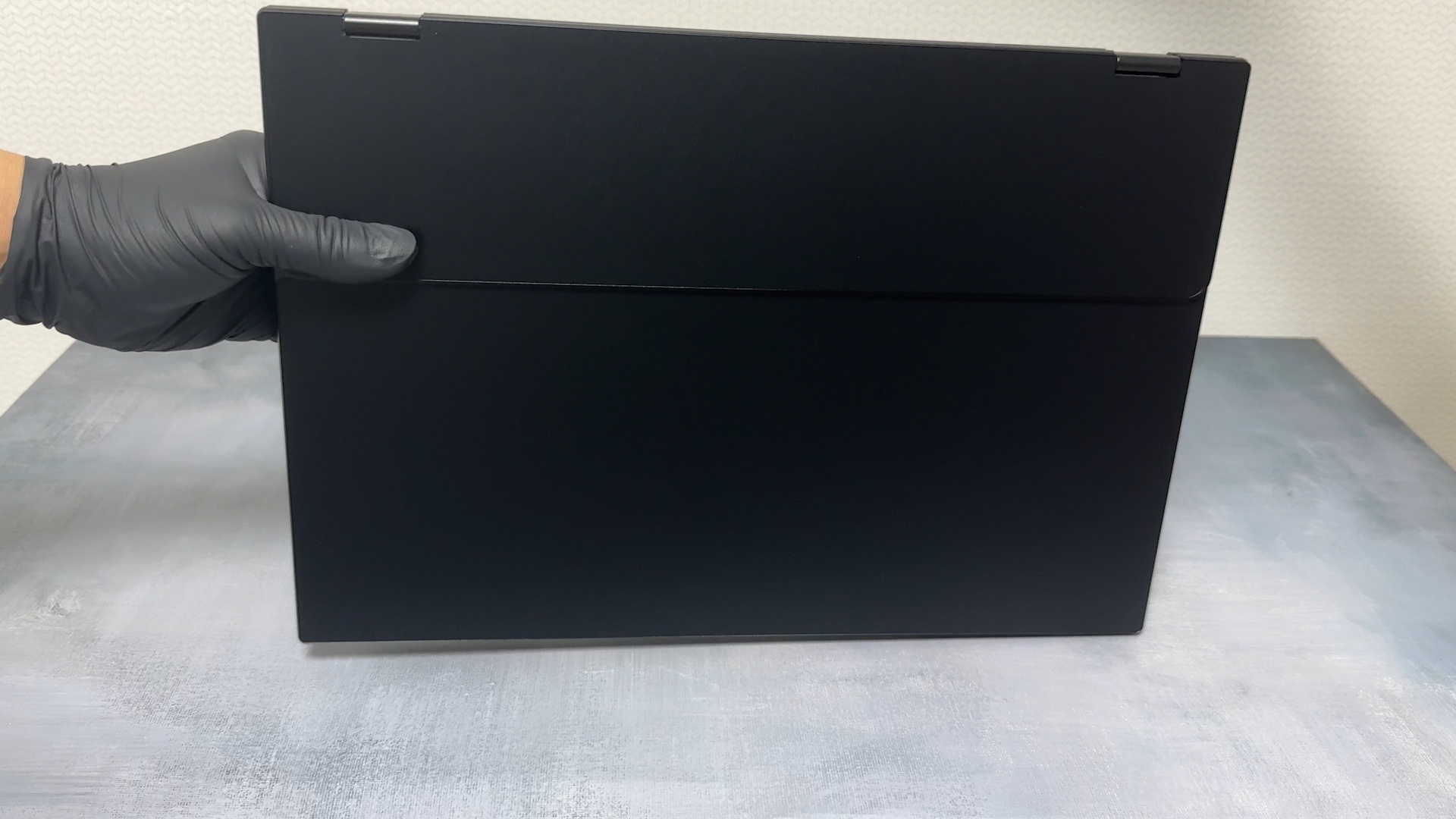 이제 모니터를 볼게요 후면에는 거치대 일체형 구조로 되어있습니다. 상판에는 파우치나 가방을 형상화한 디자인이 인상깊네요 메탈 바디는 들고 다닐때 서류가방 느낌이 들기도 합니다.