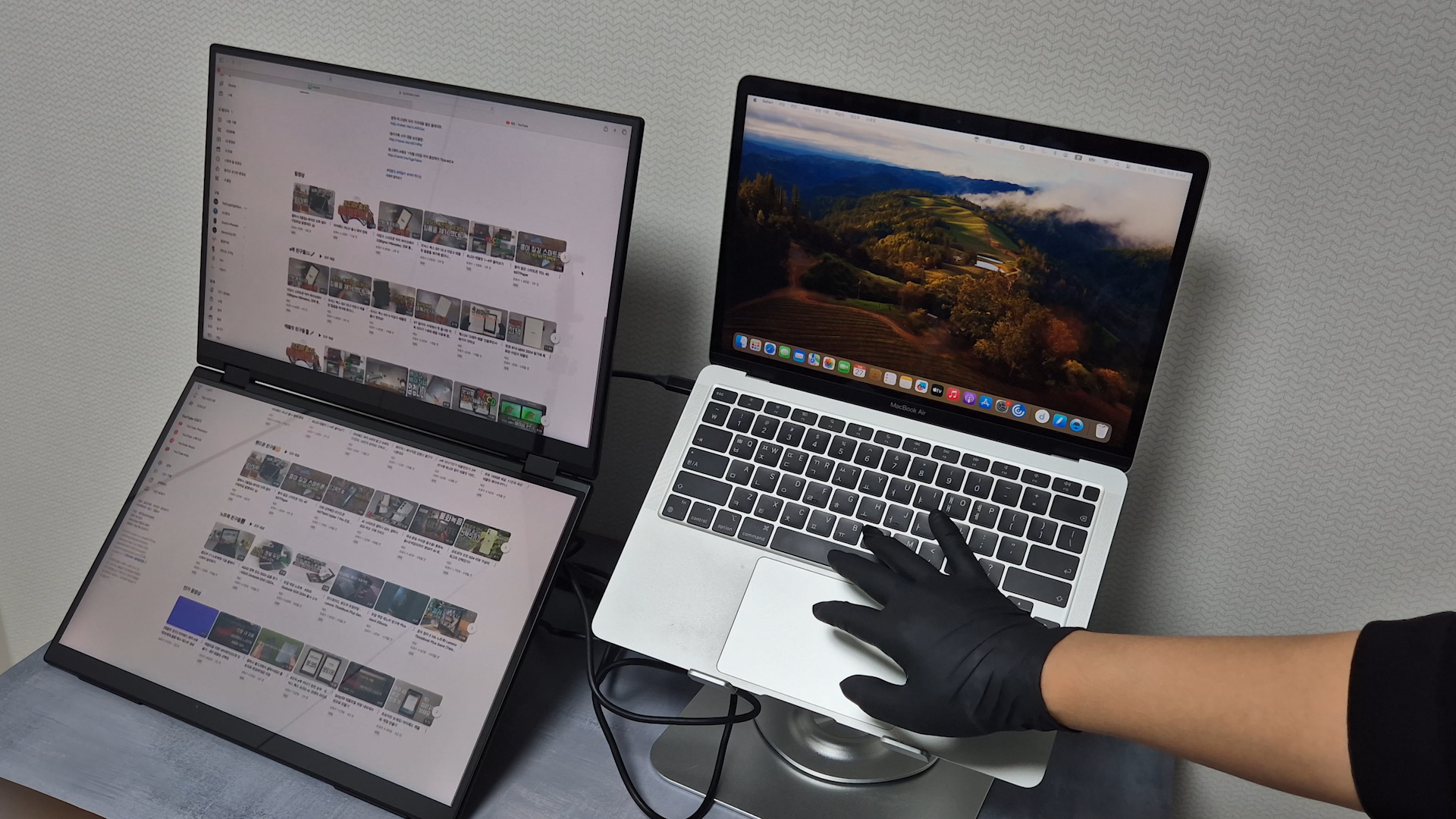 현재 macOS에서는 터치 기능이 마우스 커서의 이동에 따라 구현되어서, 마우스 커서를 모니터로 이동해야 터치 기능이 정상적으로 작동합니다. 그리고 터치 사용성에서도 윈도우 노트북 보다는 부자연스럽습니다. 스크롤 하려고 선택하면 클릭하는 것으로 인식이 되는지