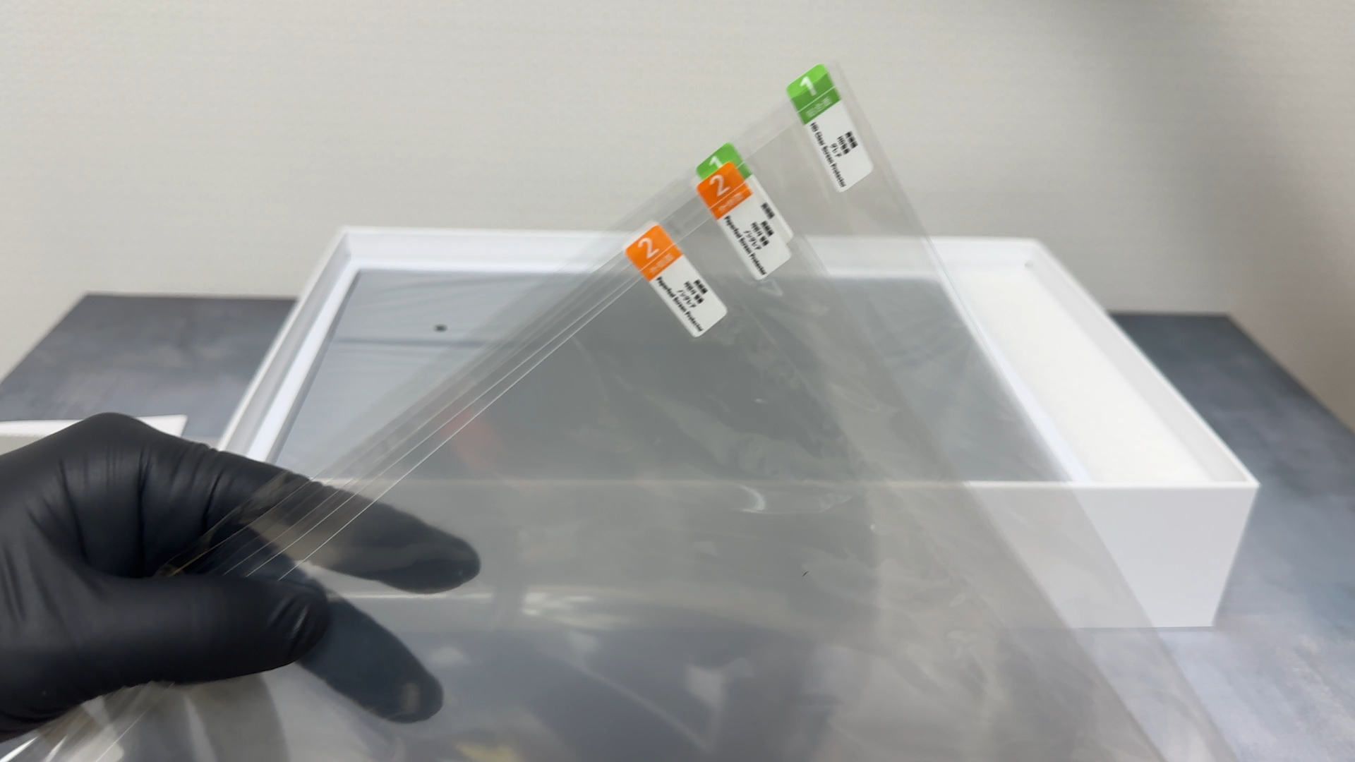 그리고 보호 필름이 여러 장 있는데요 듀얼 디스플레이 제품이라서 고화질 필름 2장, 무반사 필름 2장 동봉되어 있습니다.