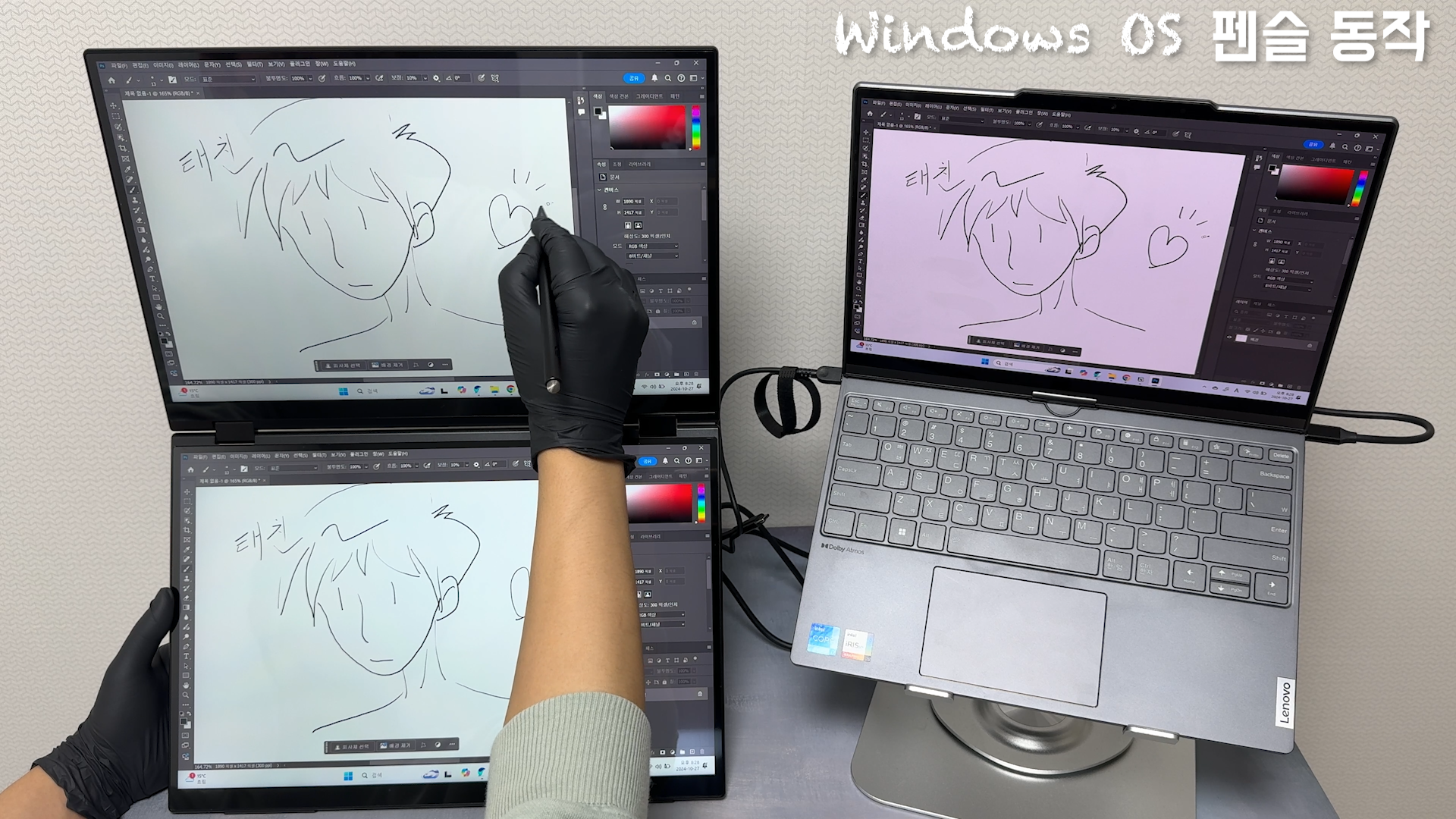 Windows OS는 전혀 문제가 없습니다. 필기를 할 때 펜의 압력 감지를 잘 지원해 주고 있습니다. 그래서 필기 외에도 그림을 그릴 때도
