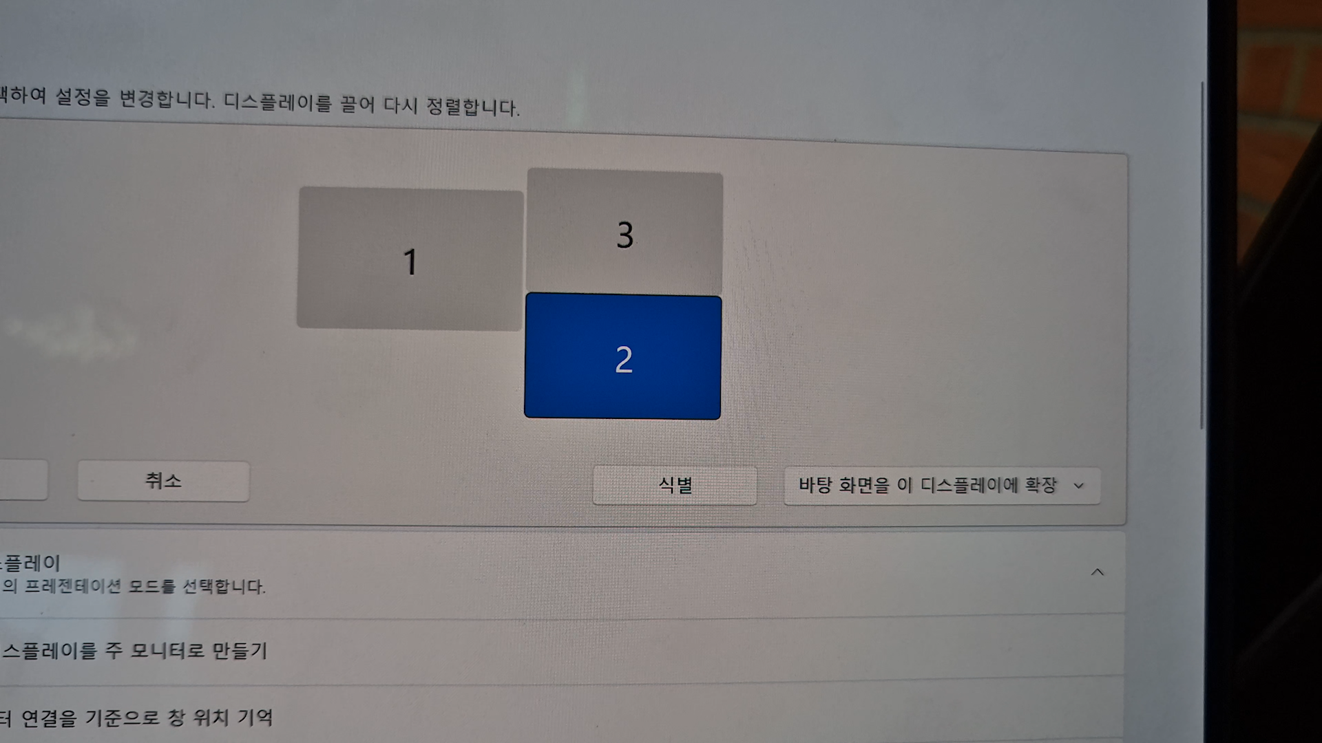 확장 모드를 사용하면, 모니터가 3개 표시됩니다.