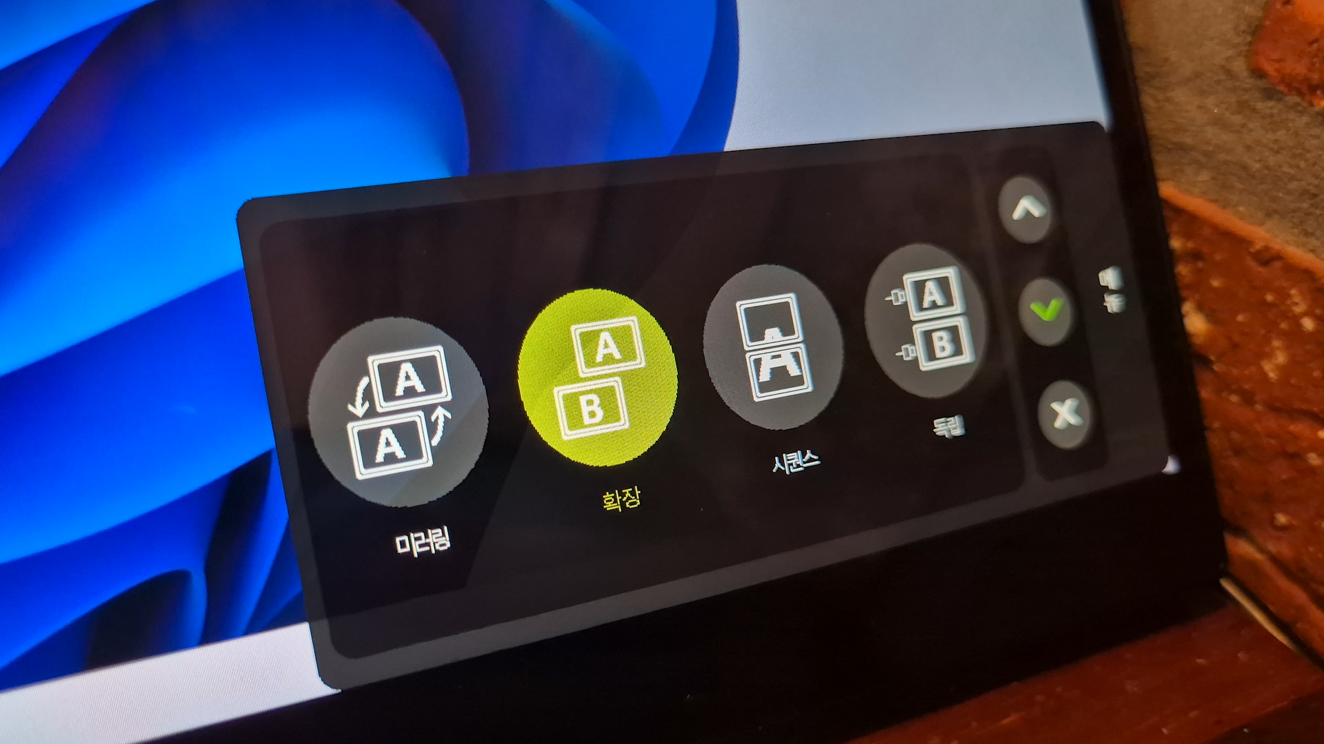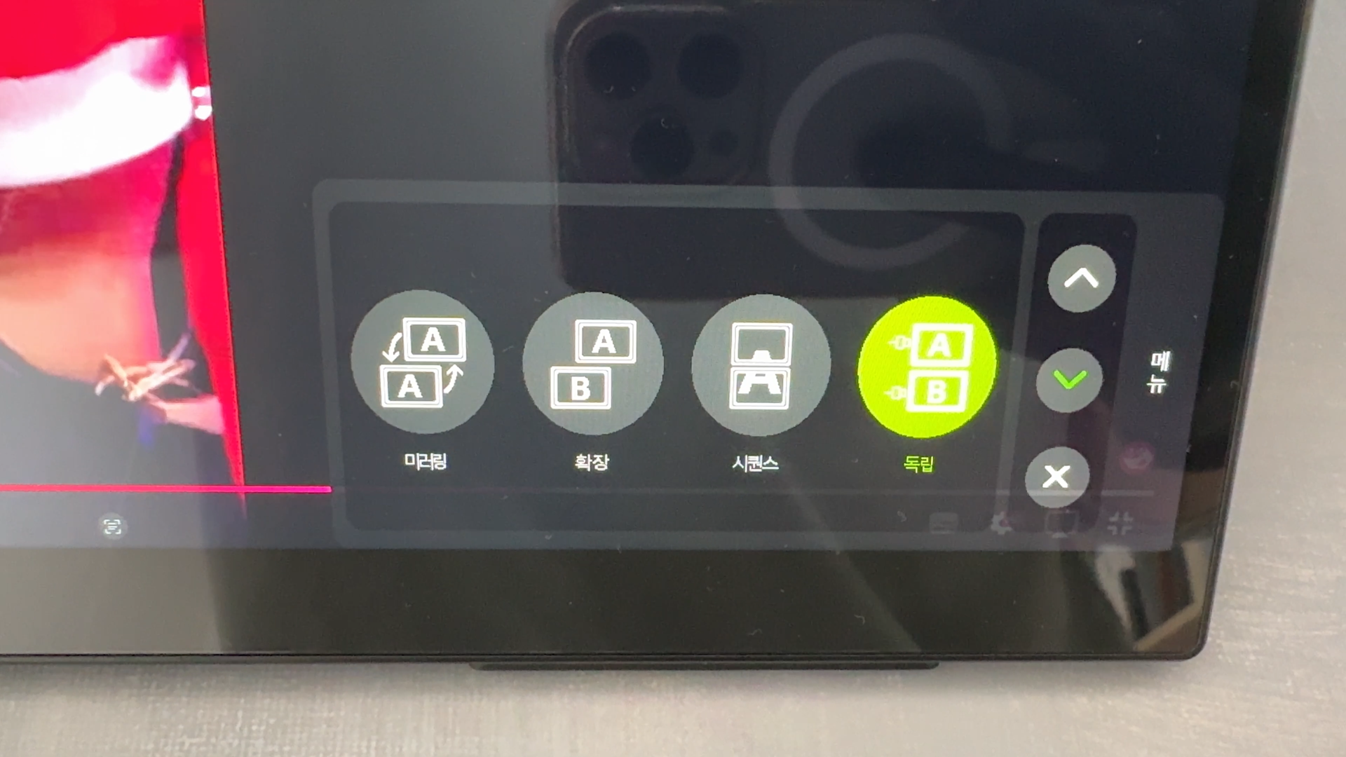 메뉴 설정을 보면 미러링, 확장, 시퀀스, 독립 모드로 사용 가능합니다.