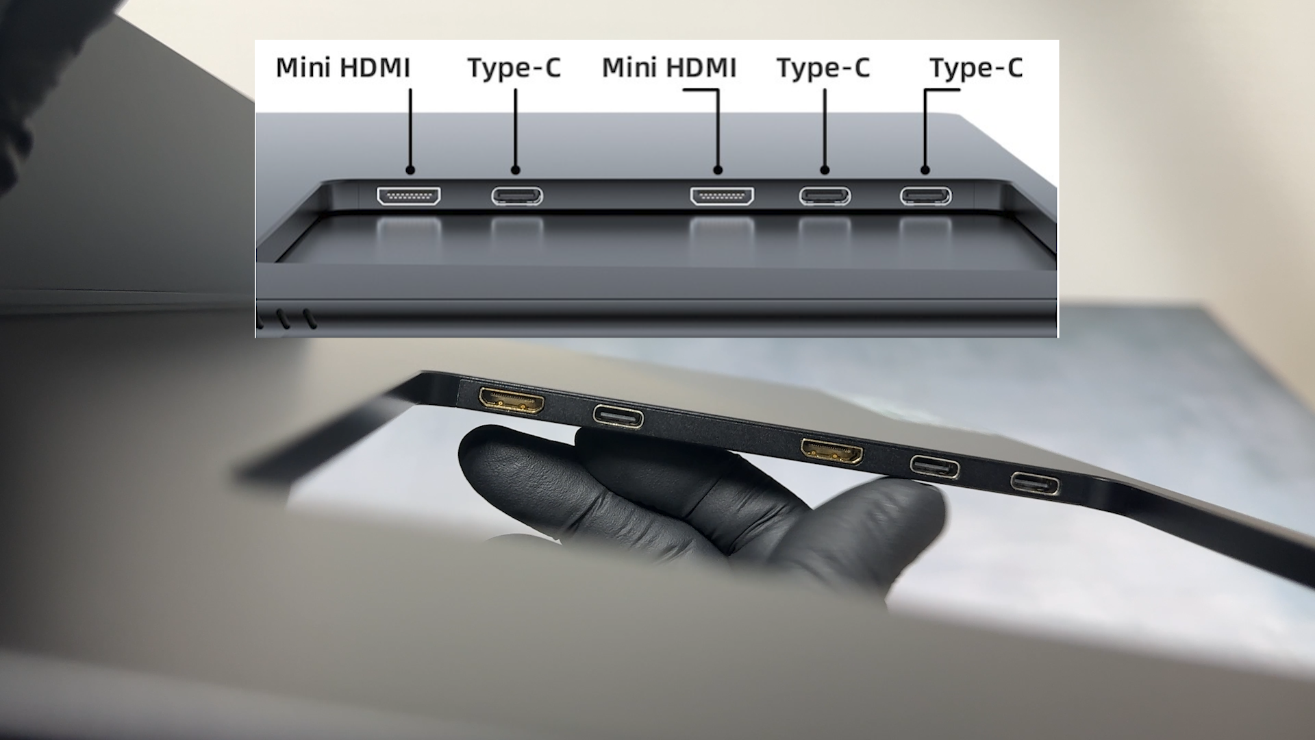 그리고 안쪽에 히든으로 포트가 있습니다. 상단 모니터는 mini HDMI, Type-C 있고, 하단 모니터는 mini HDMI, Type-C 2개 있습니다.