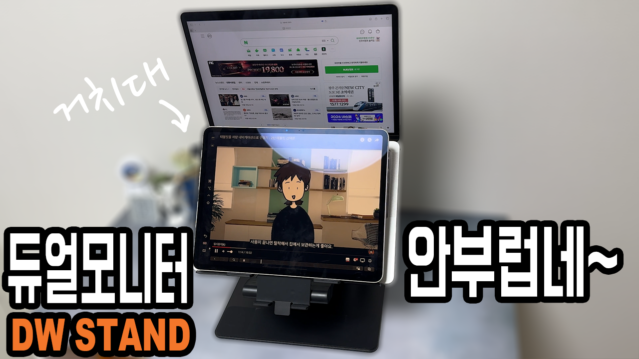 듀얼 모니터는 예전부터 계속 구입을 고민하고 있었는데, 신제품 태블릿이 쏟아져서 출시하는 바람에 그 제품들 구입하느라 계속 미루게 되었는데요 차선책으로 구입했던 제품이 DW STAND 였습니다.