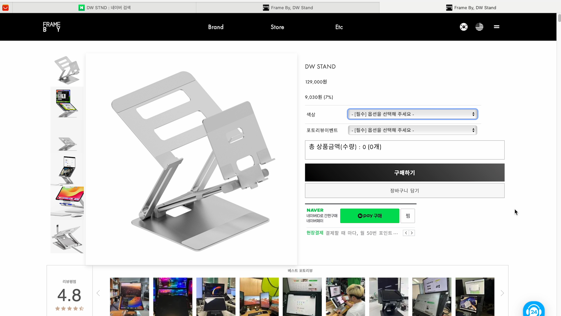 DW STAND 판매 홈페이지에 들어가보면 색상은 실버, 블랙 2종류 입니다. 가격이 129,000원인데 정가 주고 구입하기에는 너무 비싸네요