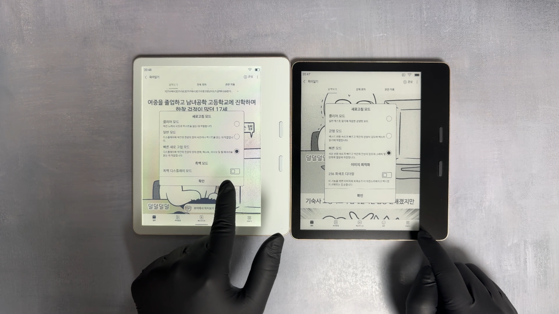 컬러가 꼭 필요한 건 웹툰을 볼 때입니다. Pantone 7은 이미지 최적화 기능이 있습니다. 그리고 타 제품보다 괜찮다고 느낀 부분은 모안MRD 디스플레이 조정 기술로 사용자가 칼레이도3 컬러 조정을 할 수 있도록 업그레이드 되었습니다. ONYX 업체가 최근 출시하는 제품들은 컬러를 너무 과하게 세팅해서 아쉽다고 말한 적이 있는데요 사용자가 색상 조절을 할 수 있게 배려한 건 너무 좋네요