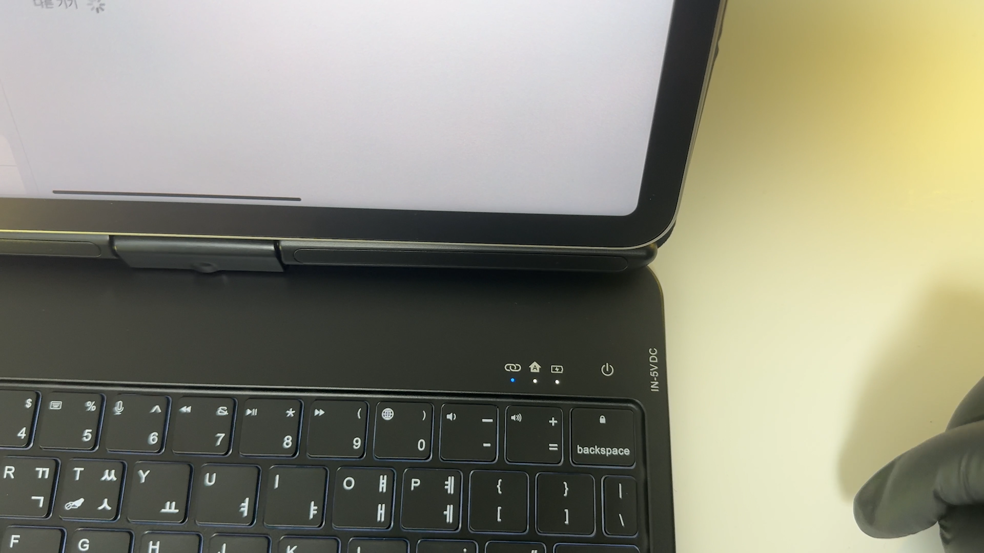 정품 키보드는 아이패드 포고핀으로 전원을 공급 받는데 DSM 플립 키보드는 포고핀 단자가 없습니다. 자석으로 태블릿을 부착하게 되는데 자력이 조금만 더 강했으면 더 좋았을 것 같습니다.
