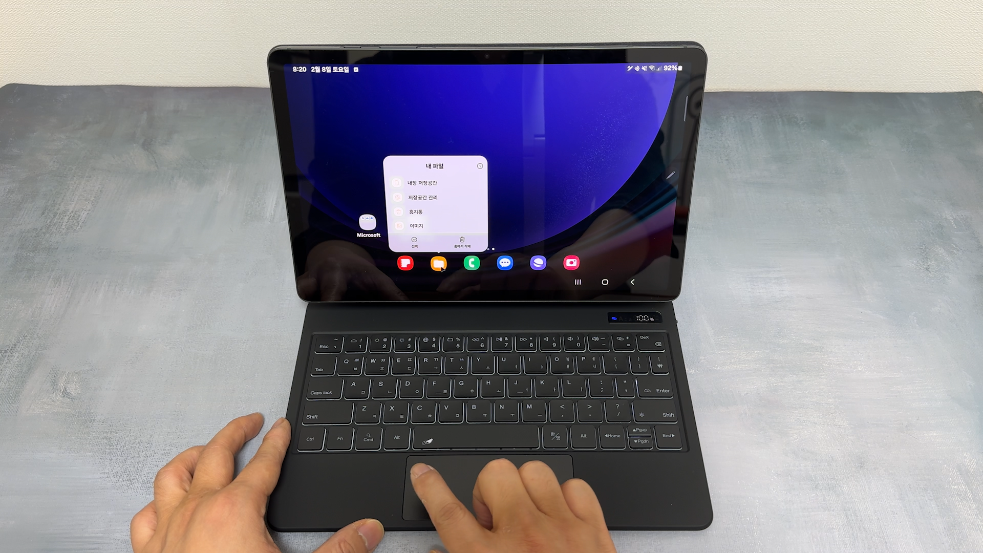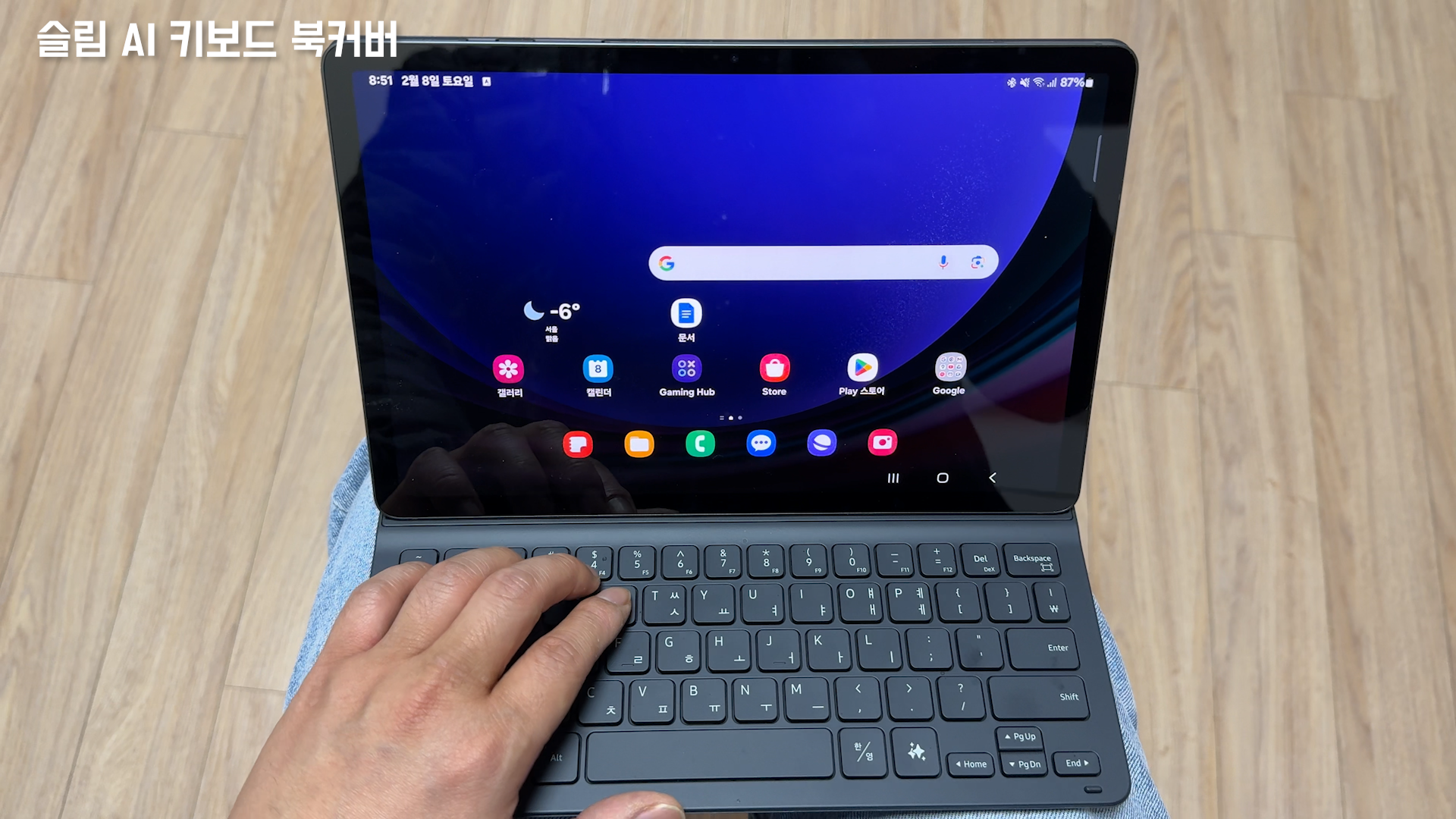 갤럭시탭 S9 정품 슬림 AI 키보드 북커버를 사용하고 있는데요 슬림 키보드는 1단 각도로 고정이 됩니다.