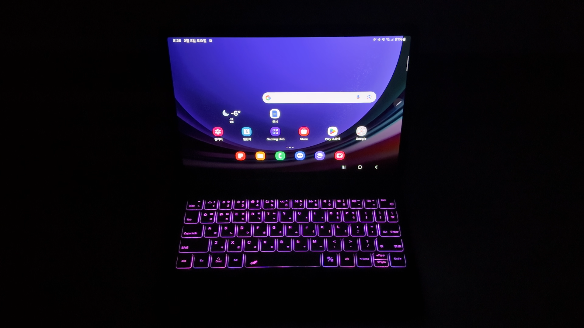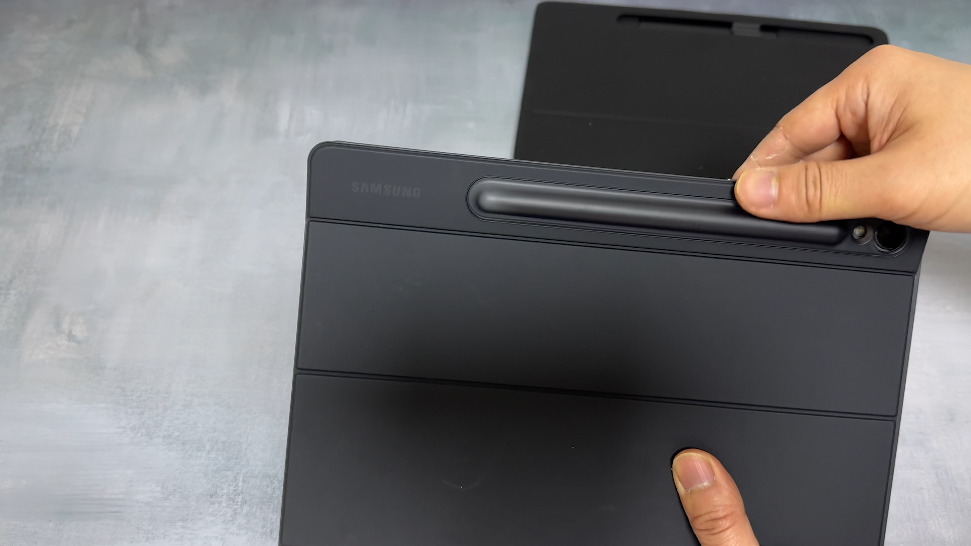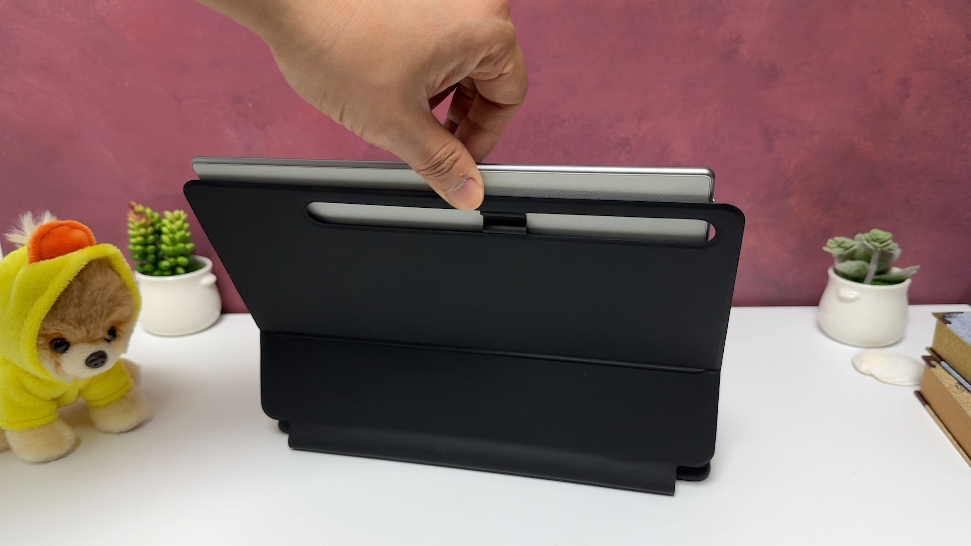 구조독 매직 키보드에 뒷면 S펜 홀더 안쪽에 넣어서 보관해 주면됩니다. 벤드 하나만 넣었을 뿐인데 실용성이 좋네요 정품 키보드는 펜 홀더 부분이 돌출 되어 있어서 미관상 예쁘지는 않습니다. 갤럭시탭 S8은 탈착이 안돼서 불만이었는데 갤럭시탭 S9부터는 탈착 할 수는 있는데 이동중에는 또 부착해야 되고, 탈착 후 보관도 번거롭다 보니까 그냥 부착한 상태로 사용하게 되더군요 구조독 디자인은 정품 키보드의 단점을 상쇄해줘서 이런 S펜 홀더 방식도 괜찮은 아이디어라고 생각합니다.