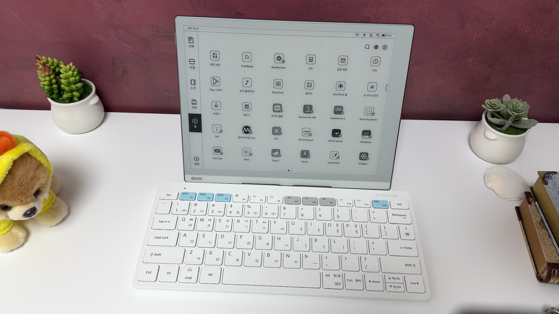 화면 비율때문에 덮어 놓고 보면 위쪽에 공간이 부족합니다. 그래서 사용은 가능하지만 살짝 아쉽네요 구조독에서 아이패드 에어 11인치 제품도 배송중인데 다음에는 그 제품으로 도전해보겠습니다. ONYX BOOX GO 10.3 키보드를 찾는 과정은 계속될 예정입니다. 좋은 제품 있으면 댓글로 알려주세요