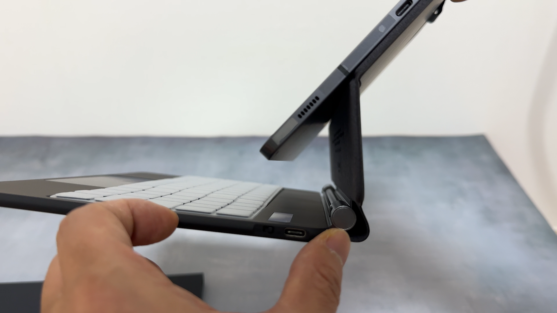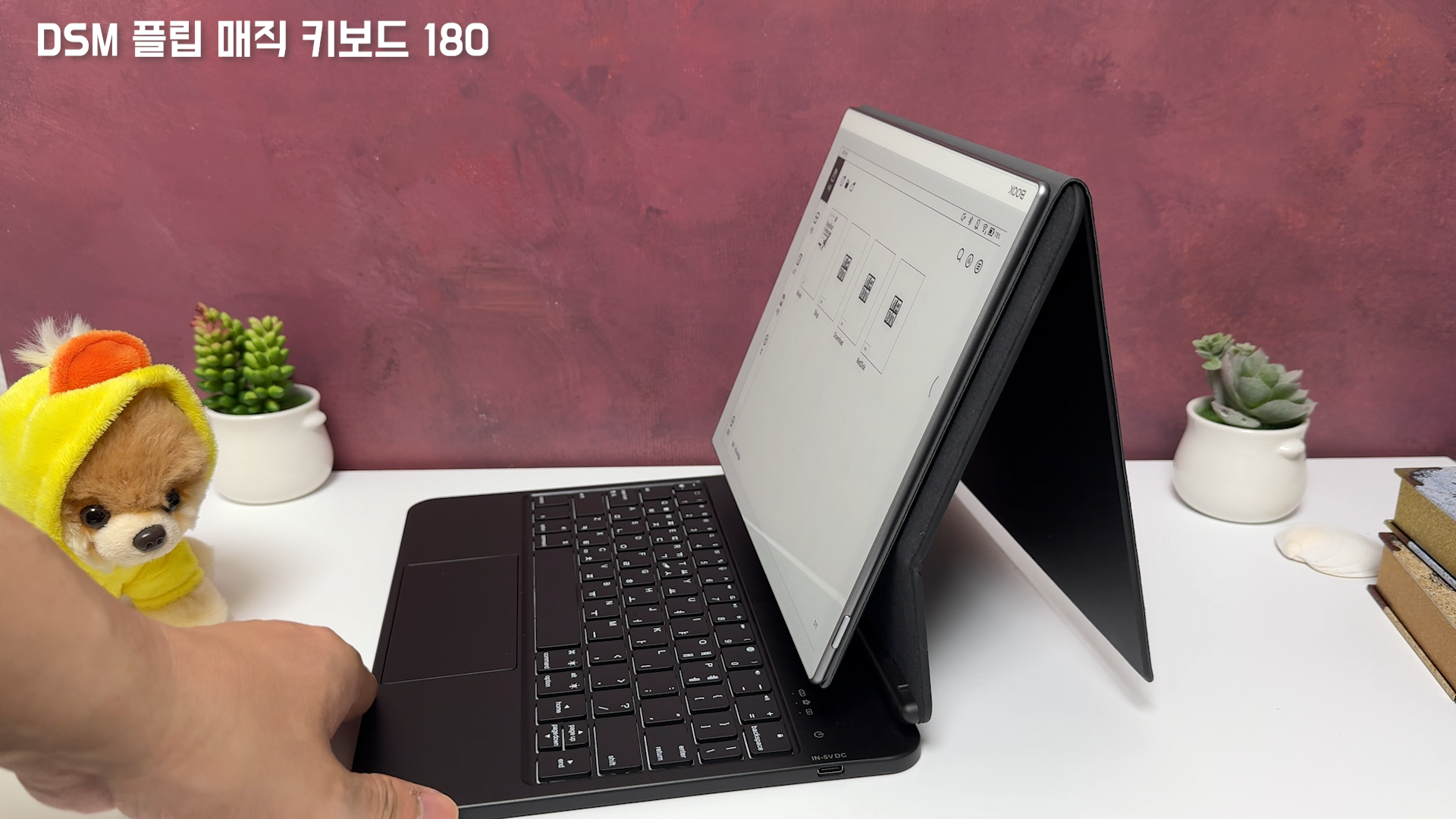 구조독 매직 키보드도 자석 위치는 크게 다르지 않은데요 이렇게 e북 리더기를 거치하면 자력으로 부착이 됩니다.