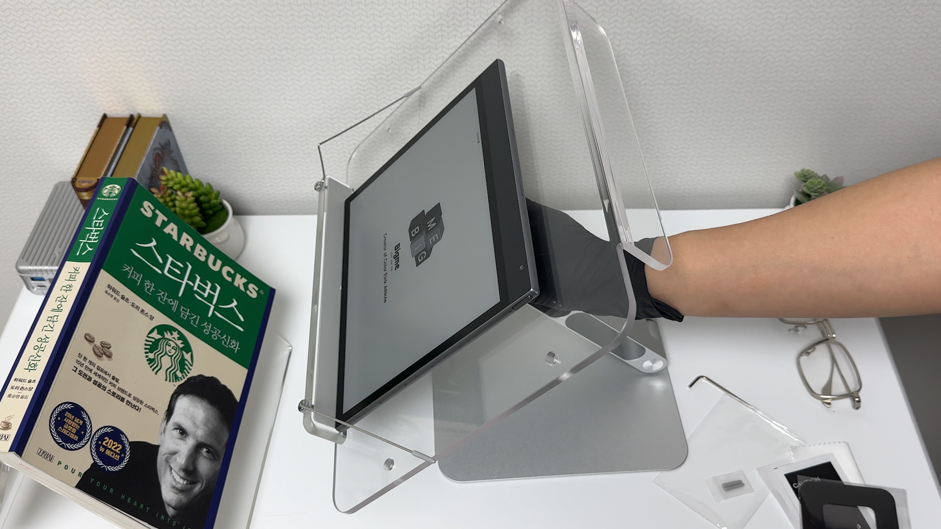 10인치 제품을 거치해도 잘 됩니다. 마그네틱 북 스탠드에는 ONYX Palma 2 제품을 거치해볼게요