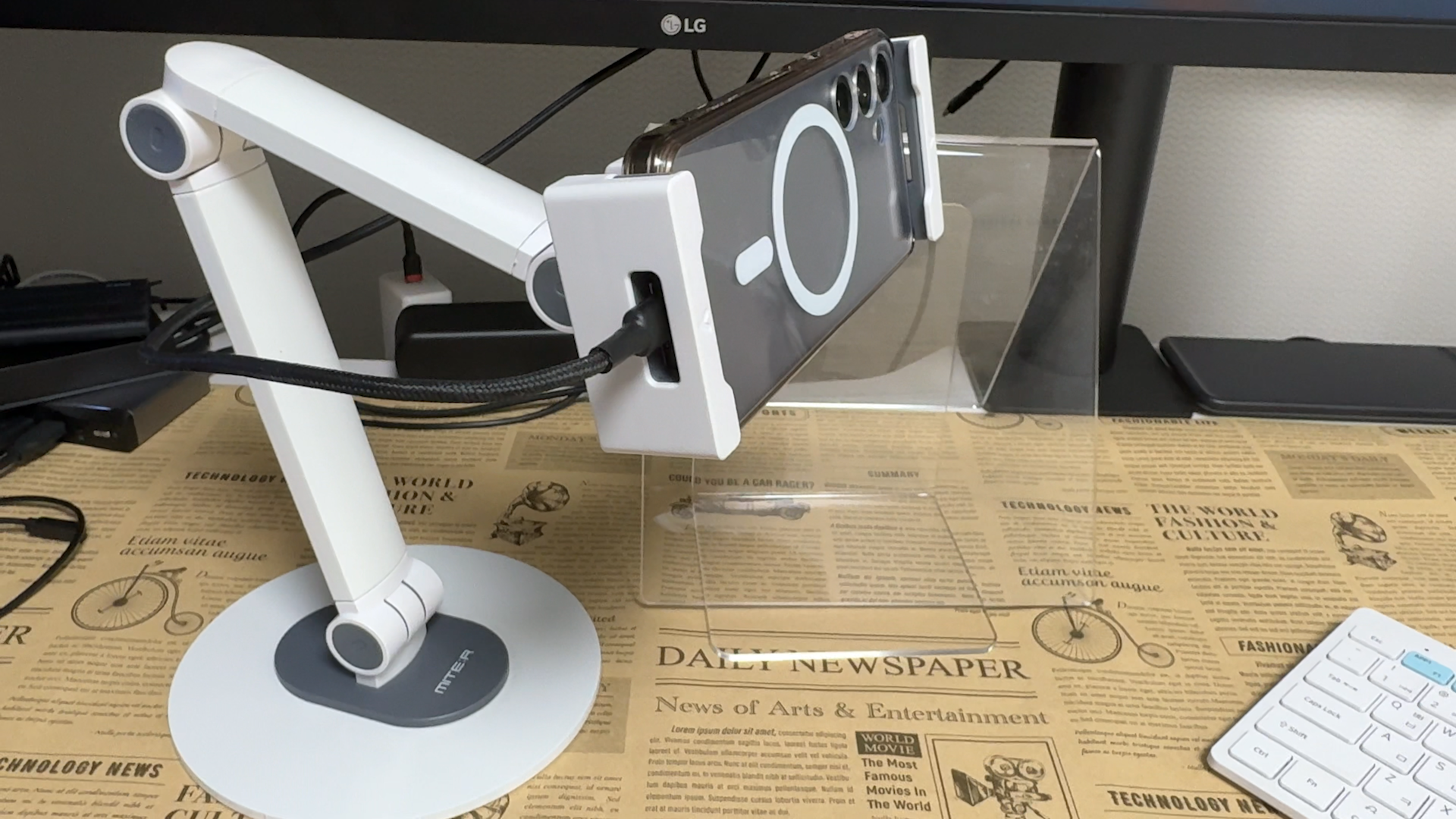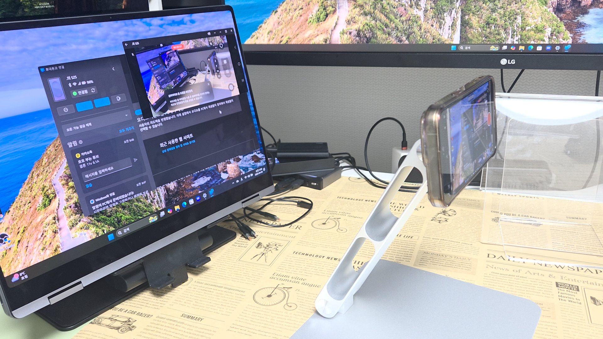 거치대를 이용해서 촬영을 할 수도 있을 것 같습니다. 실제로 저도 노트북 화면을 보여줄 때 이렇게 촬영해서 영상을 만든 적이 있습니다.