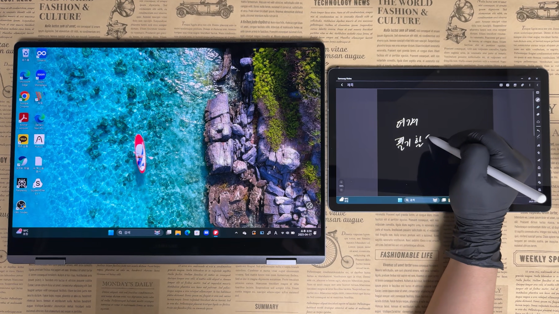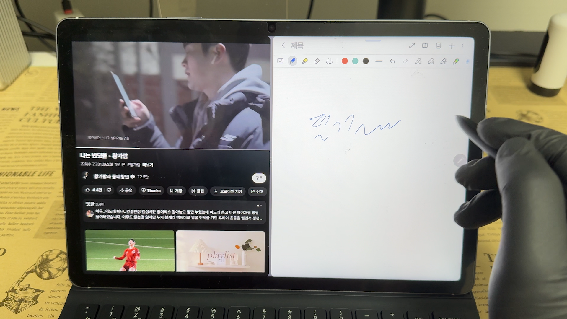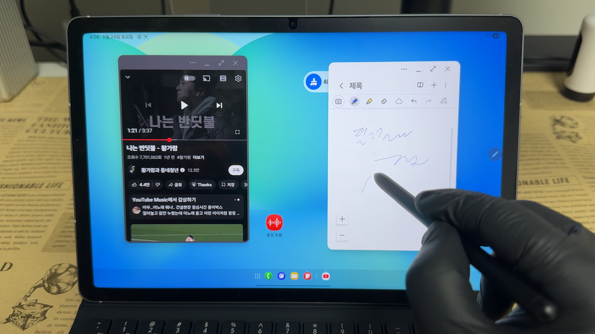 멀티 윈도우 기능으로 한쪽에서는 YouTube를 보면서 다른 한쪽에서는 노트 필기를 동시에 할 수 있어요