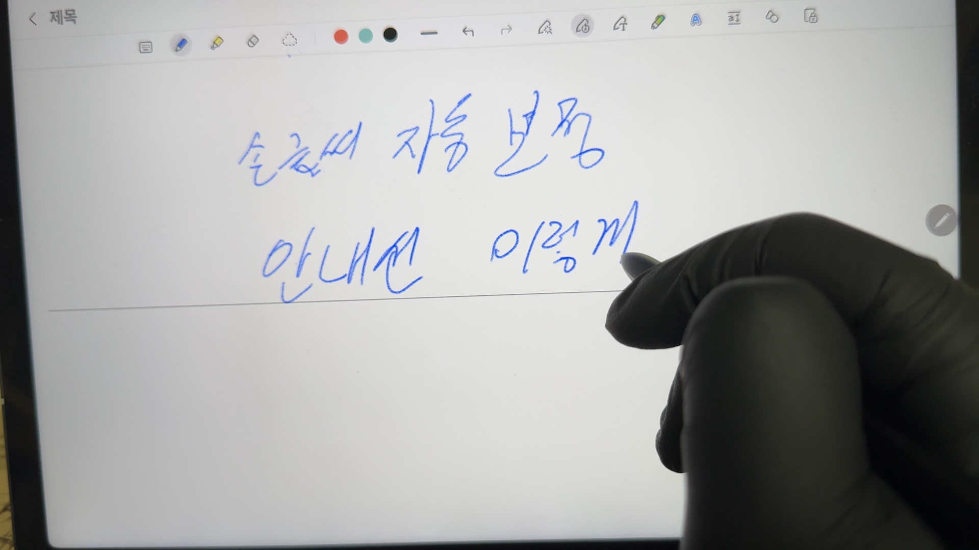 이미 글자를 쓴 경우에도 손글씨 정렬 기능이 있어서 삐뚤삐뚤 쓴 글씨를 정렬해 줍니다.